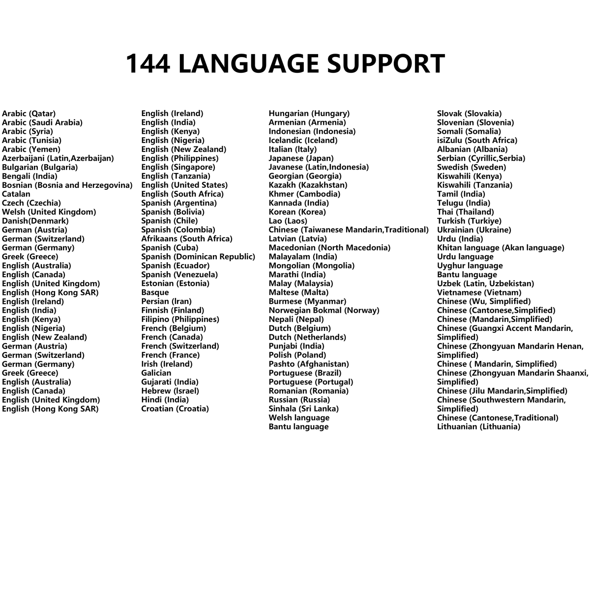 Support languages: 144 languages