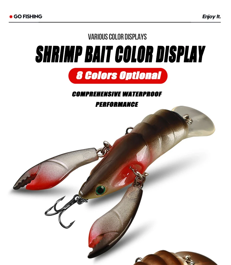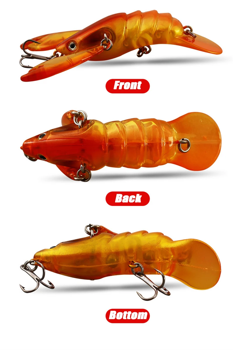 1.REALISTIC ACTION - Shrimp Has A Realistic Body that creates lifelike swimming movements in the water that will have any catch convinced. The special tail creates a kicking action, while the lively moving legs, antenna perform lifelike actions on the retrieve and the drop, which adds more attraction.