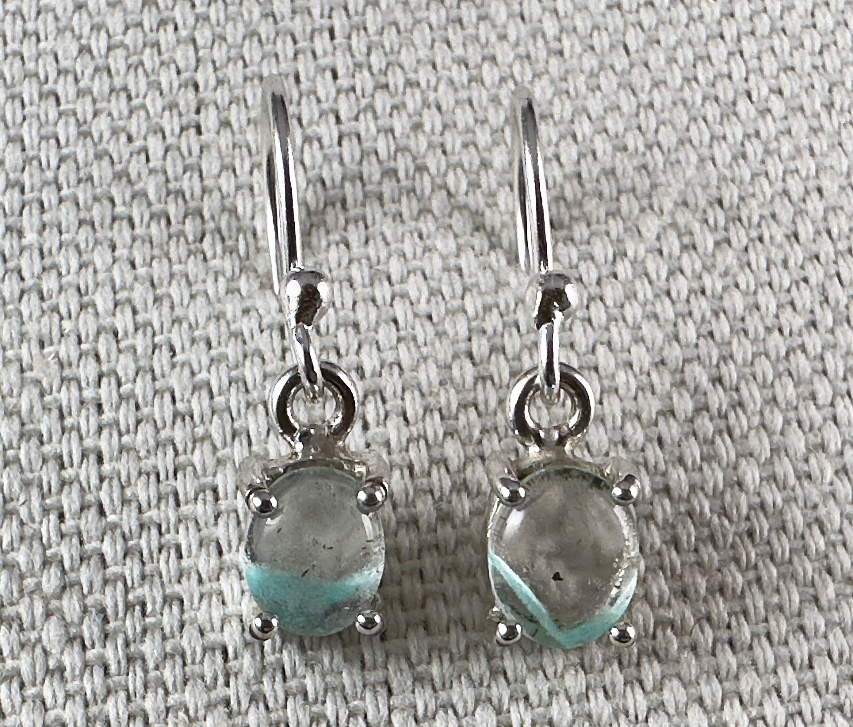 Rare AJOITE in QUARTZ Crystal Dangle Drop Earrings Sterling Silver Jewelry 54578