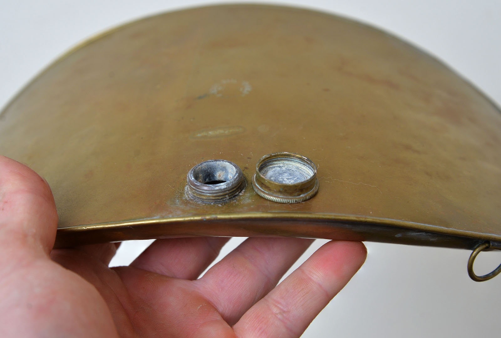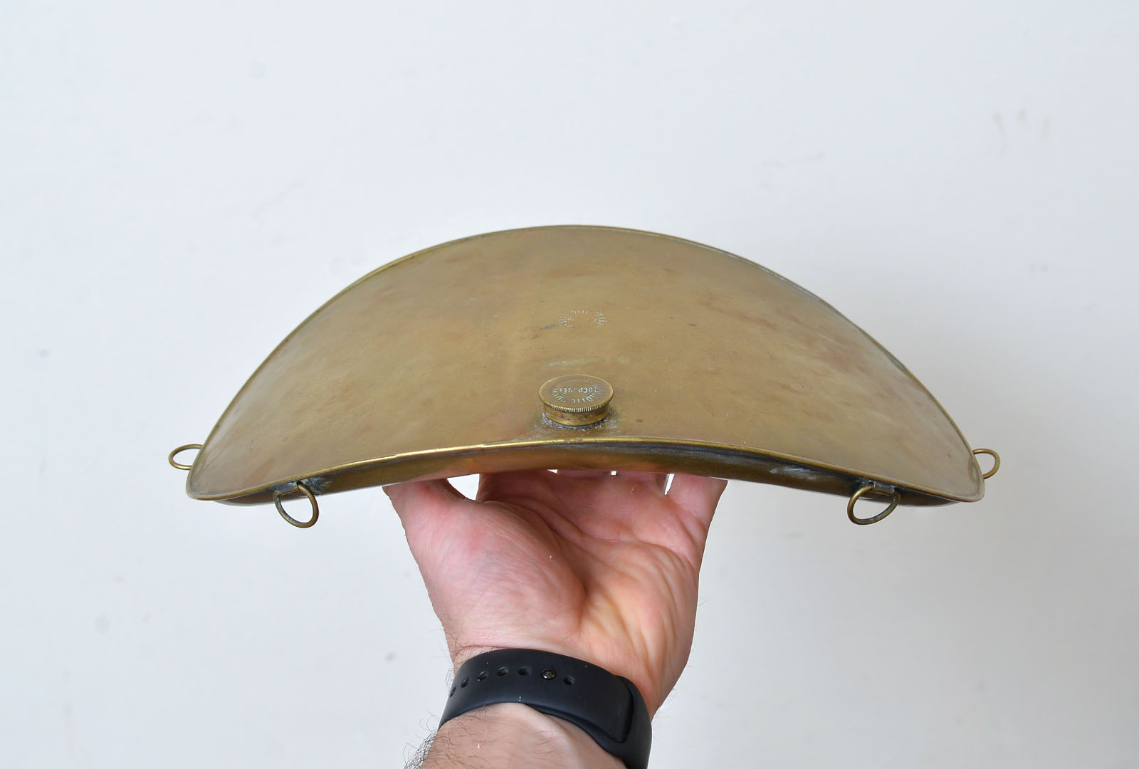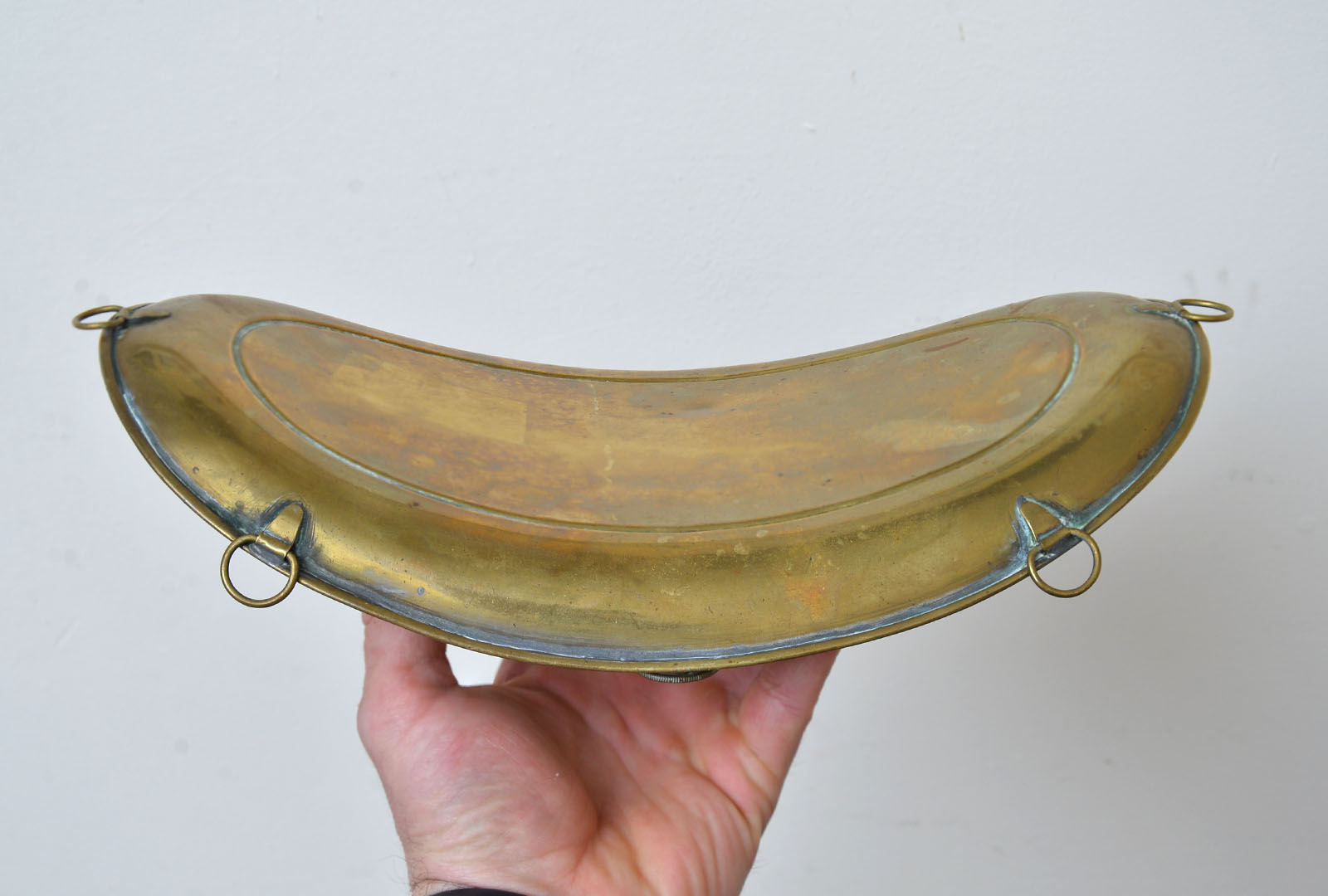 Welcome to my listing for this old French back or foot hot water warmer. Couple of small dents but in generally very ood condition. Eyelets are all present.