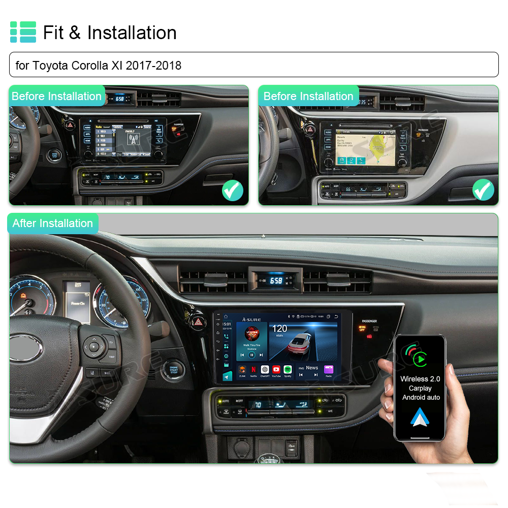 - Wireless Apple Carplay & Android Auto: Simply pair your mobile phone with your car radio for seamless connectivity. With the voice assistant, drivers can easily control music playback, navigation, phone calls, and other functions. By simply speaking the command, the radio can quickly respond and perform the corresponding operation. This intelligent interaction not only improves driving safety but also gives drivers a more convenient driving experience.