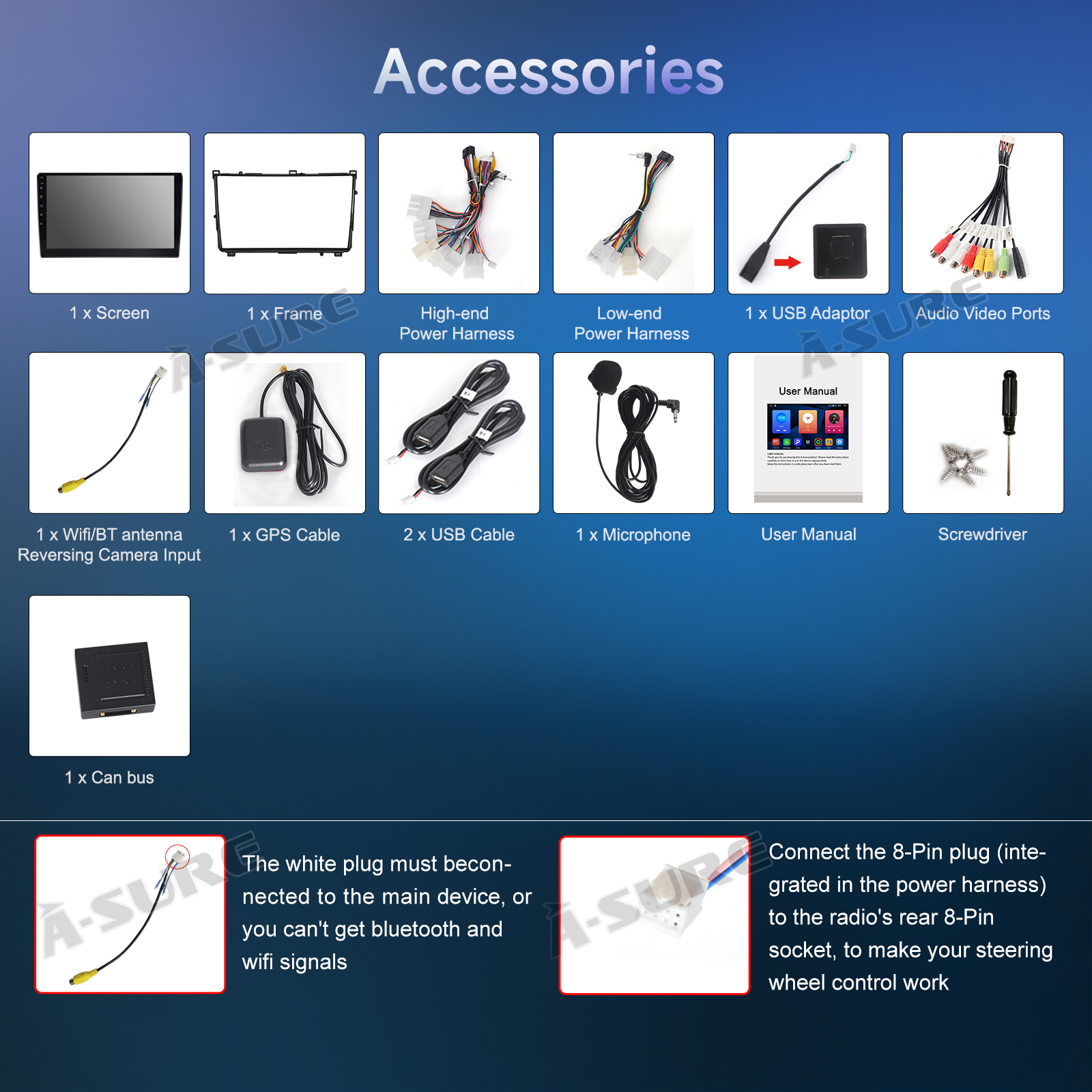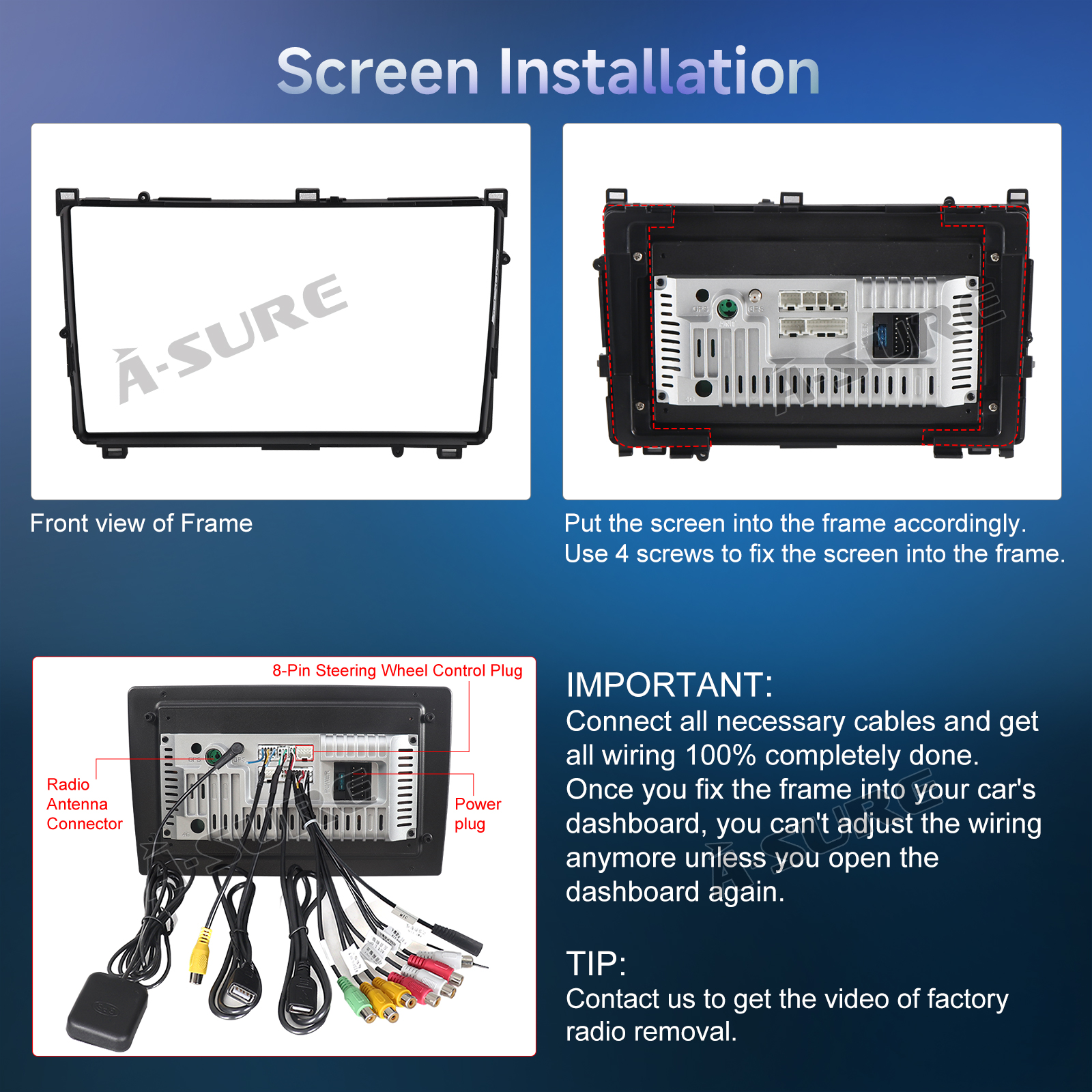 Included Components: Wiring harness, Frame, Screen