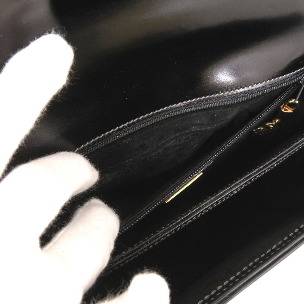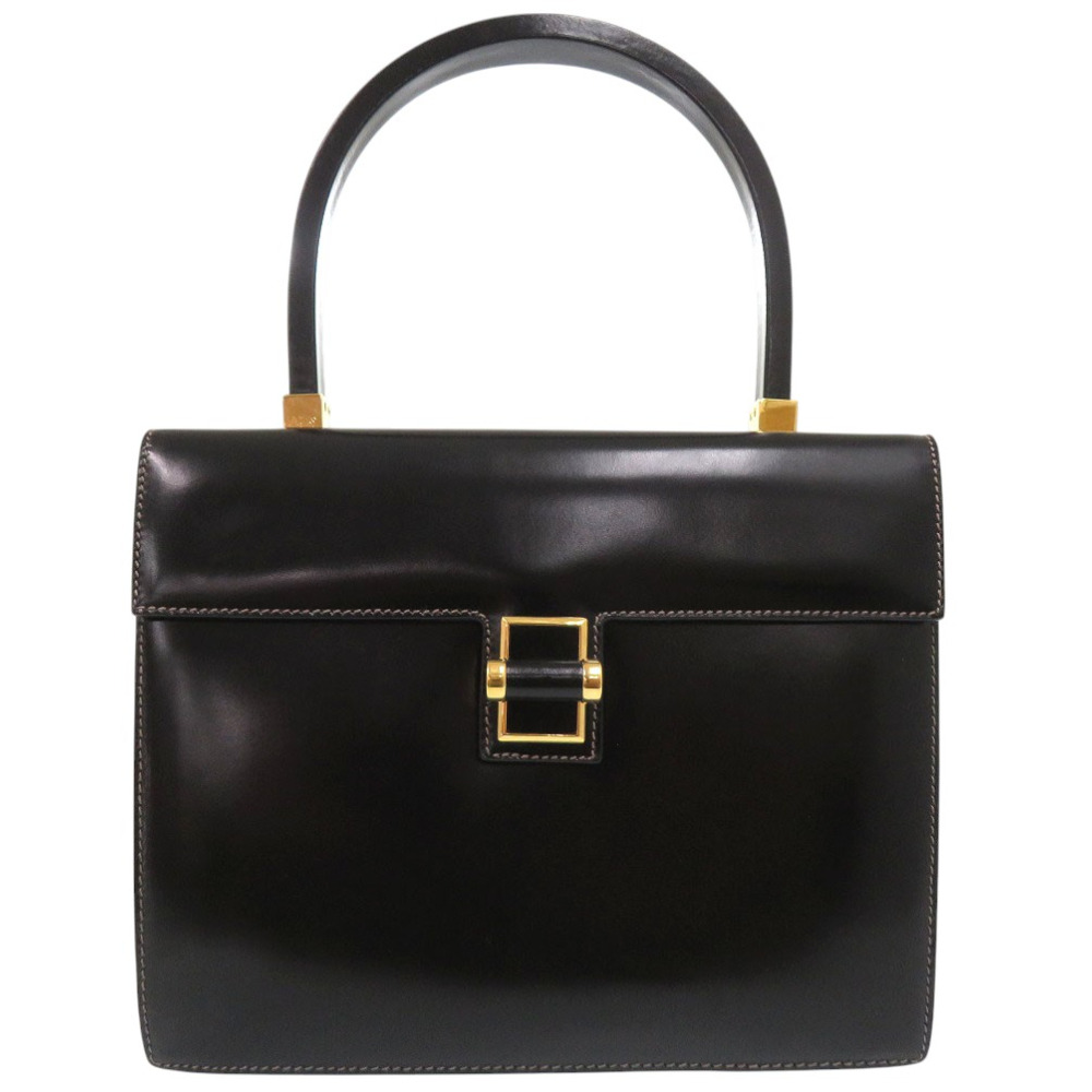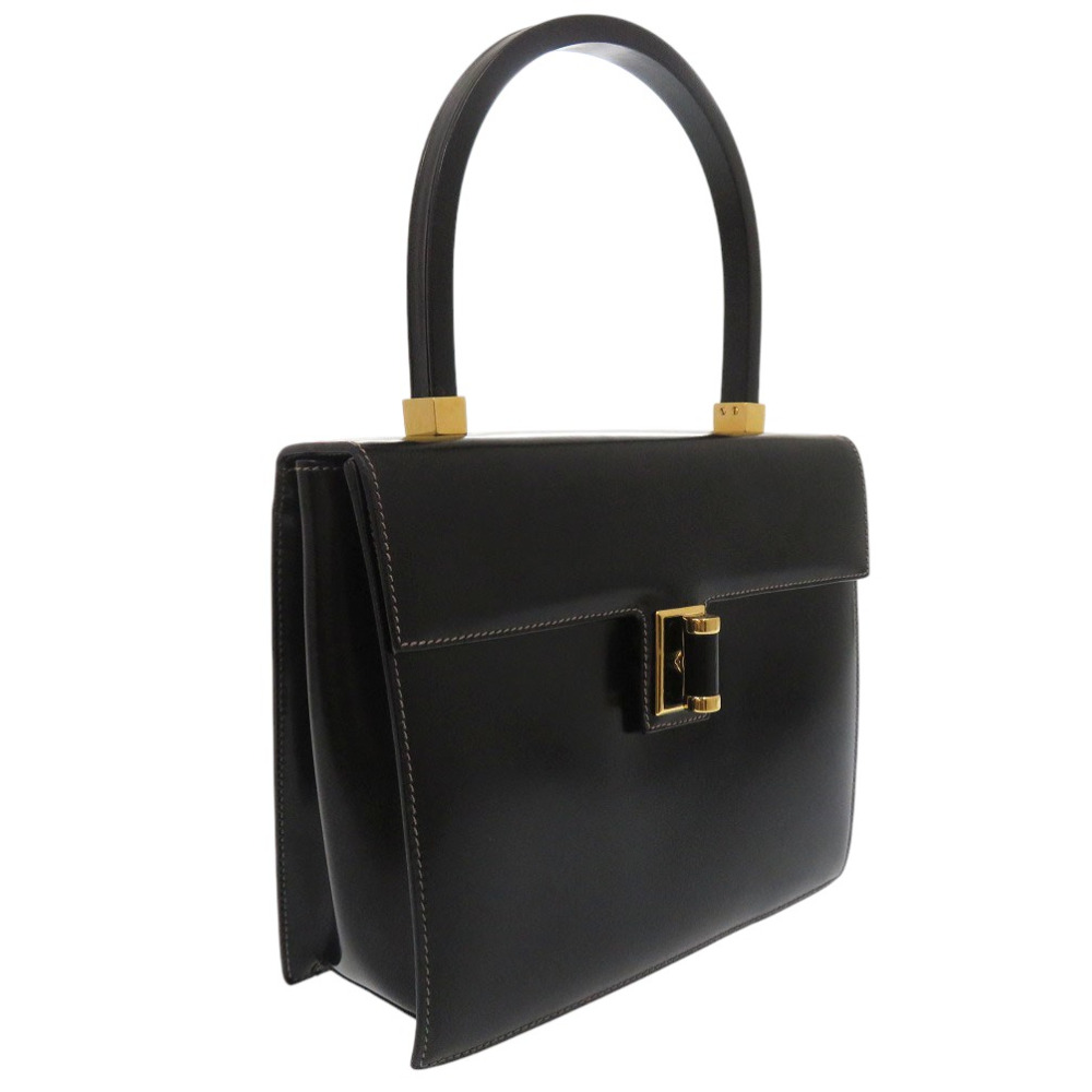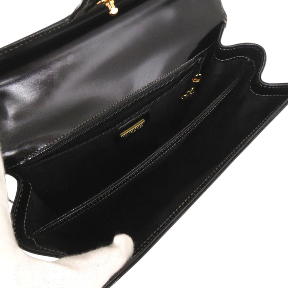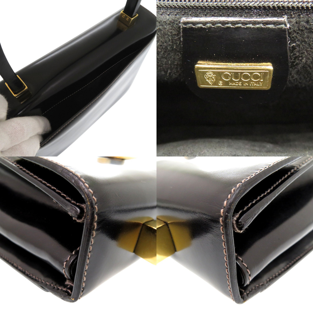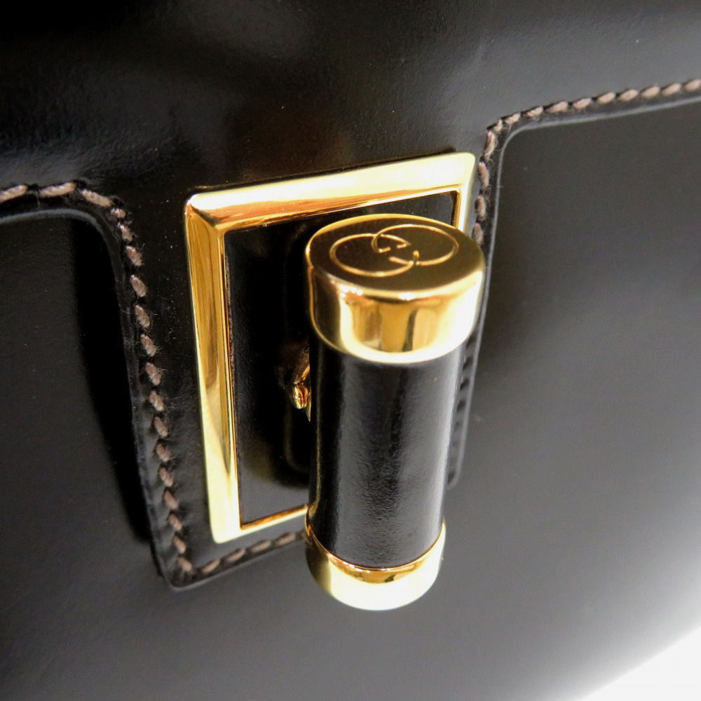AUTHENTIC GUCCI Old Gucci Turnlock Logo Hardware Hand Bag Black Leather