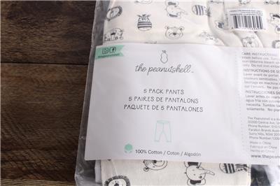 The Peanutshell Baby Boy or Baby Girl Pants Set, 5 Pack, Grey Safari Animals