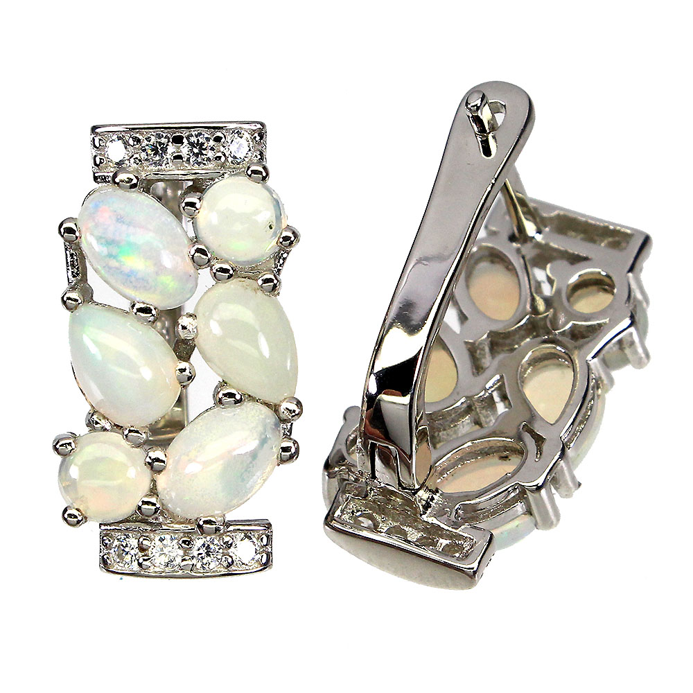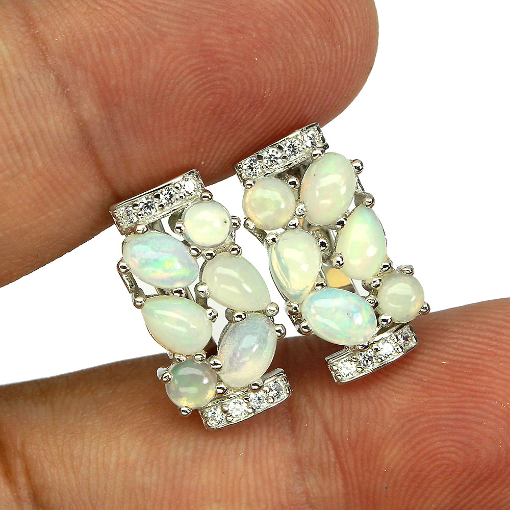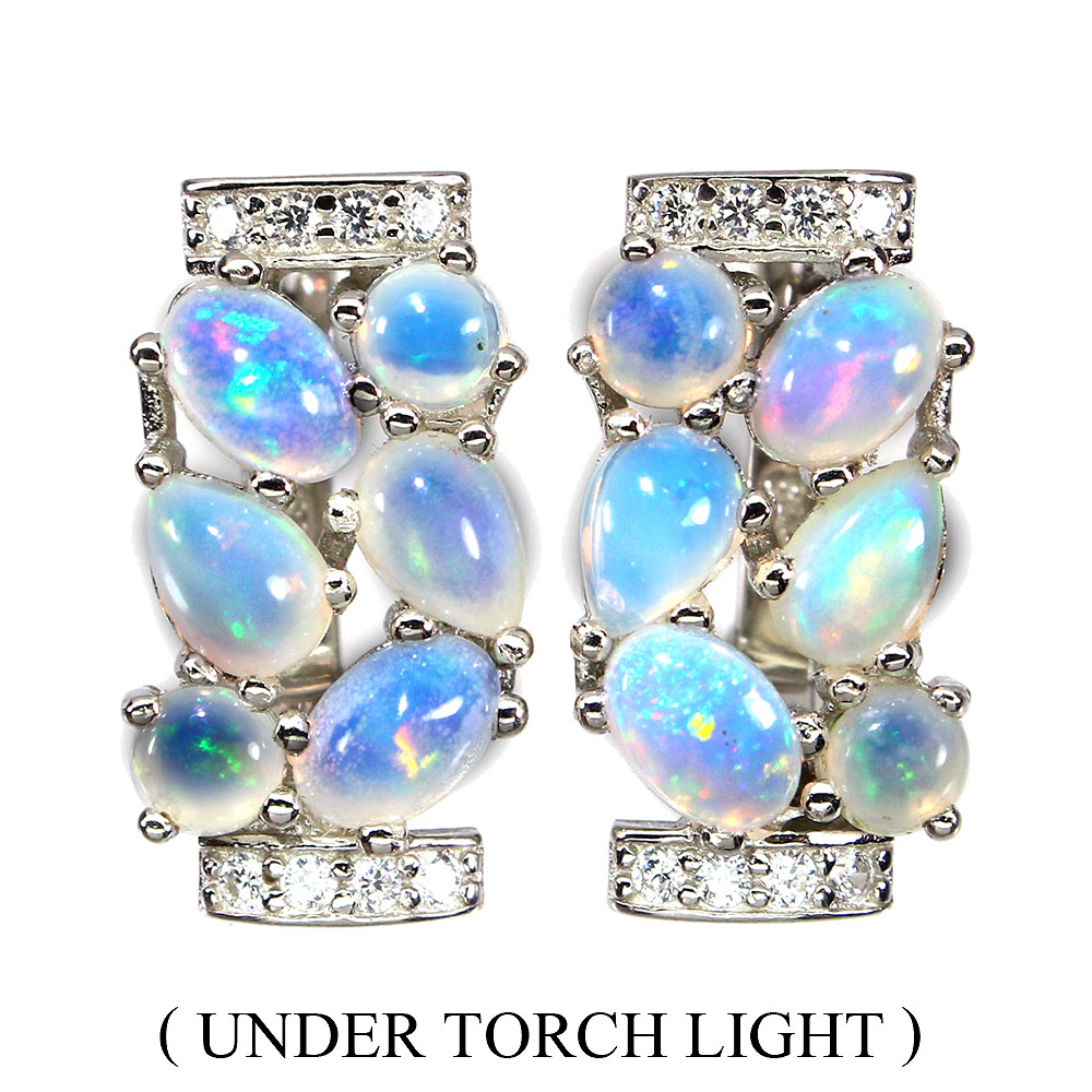 Unheated Oval Fire Opal Rainbow 6x4mm Simulated Cz 925 Sterling Silver Earrings