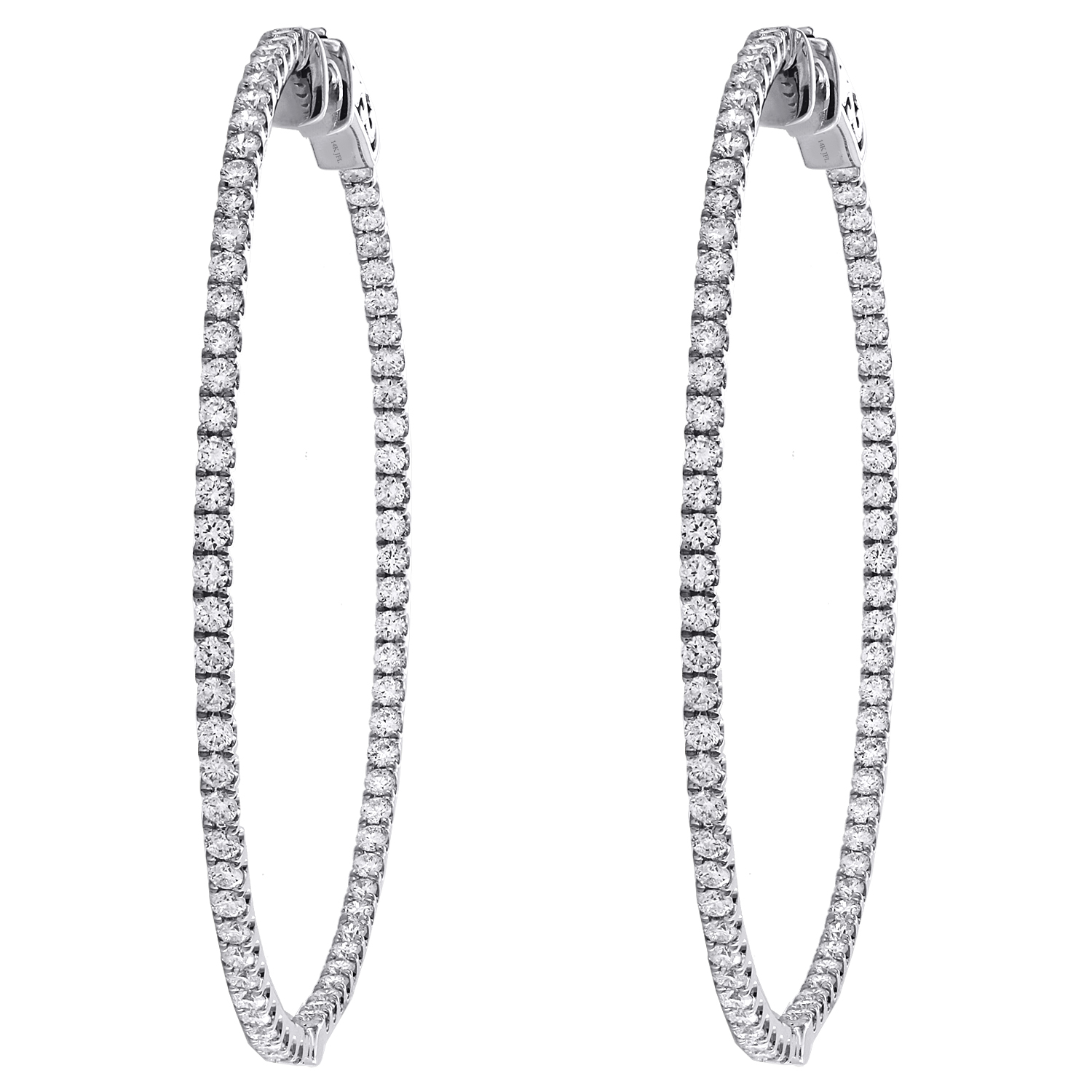 (12.2 gr. of 14K White Gold | Total Carat Weight: 3.33 ct. t.w. of White Diamonds | Long: 2.20" | Width: 2.20" | Thickness: 2mm | Clarity: SI2 - I1 | Color: G - H | Women's Genuine Round Cut Prong Set Diamond In & Out Hoop Fancy Statement Earrings)