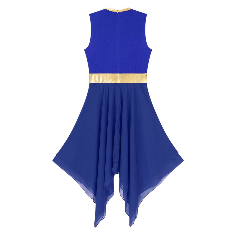 Sleeveless dance dress for women, color block patchwork design, round neck, Asymmetrical hem, stylish and chic.