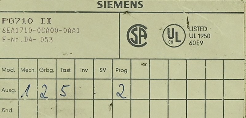 Siemens 6EA1710-0CA00-0AA1 PG710 II 6EA1 710-0CA00-0AA1 Simatic S5