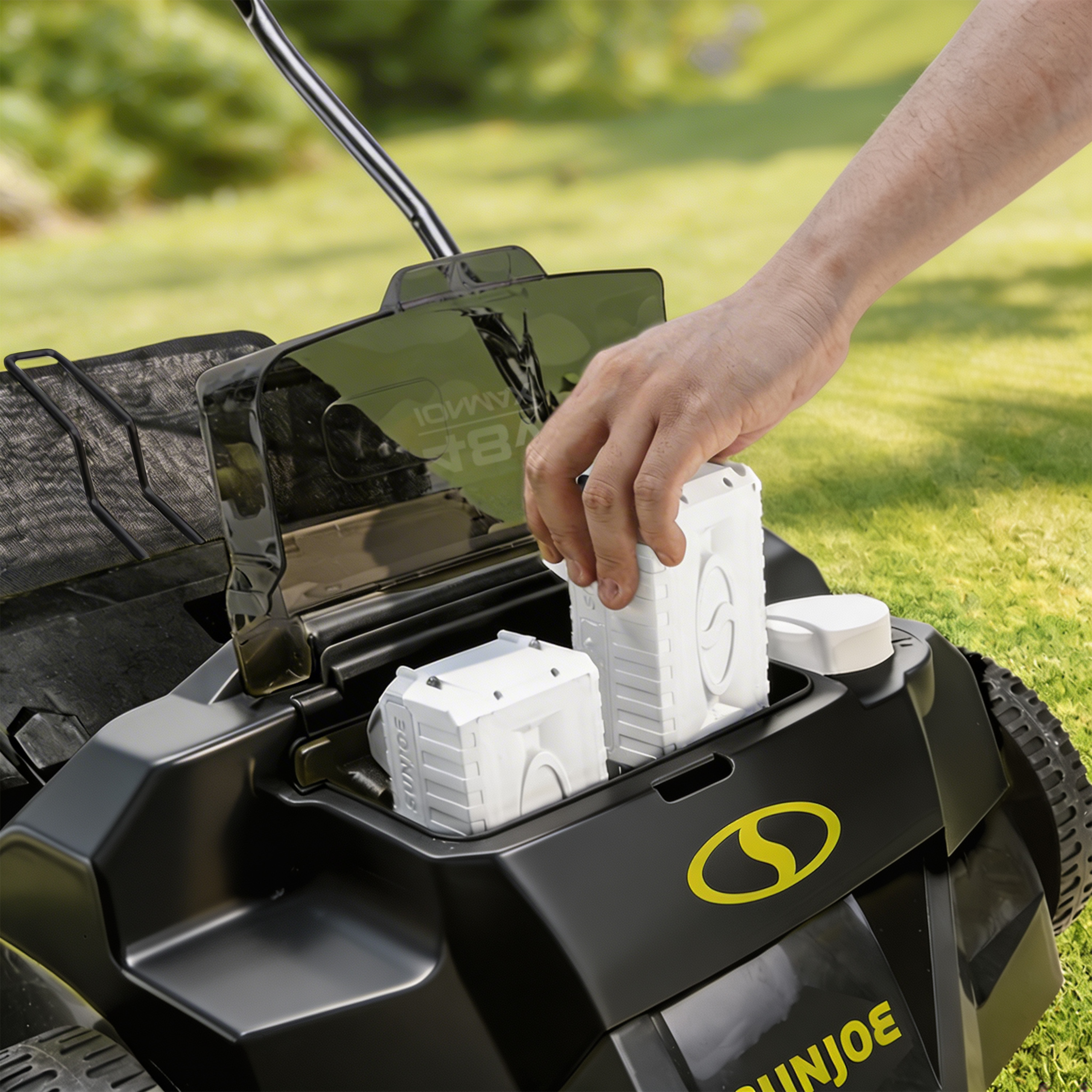 Driven by a 600-Watt brushless motor, this cordless powerhouse runs cooler, quieter, and longer than traditional gas-powered models, with no fumes or maintenance hassles. The two included 24V 4.0Ah batteries provide up to 20 minutes of runtime, giving you the freedom to tackle your lawn without the constraints of a cord.