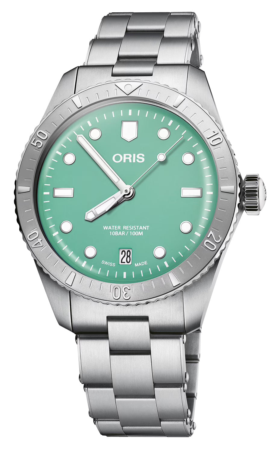Like all of our watches, this Oris Divers Sixty-Five Cotton Candy Automatic Stainless Steel Green Dial Date Unisex Watch is brand new and comes in its original packaging.