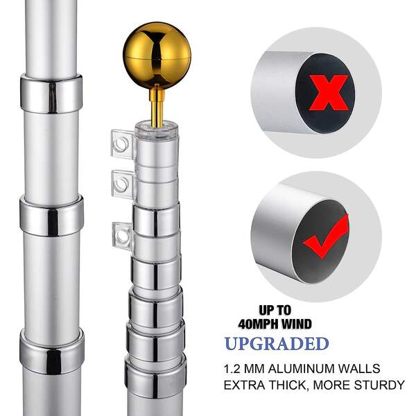 Flag-Worthy Quality: Designed to complement your patriotism, this flag pole pairs perfectly with 100% polyester flags, ensuring they wave elegantly in the breeze and resist fading, even under direct sunlight.
