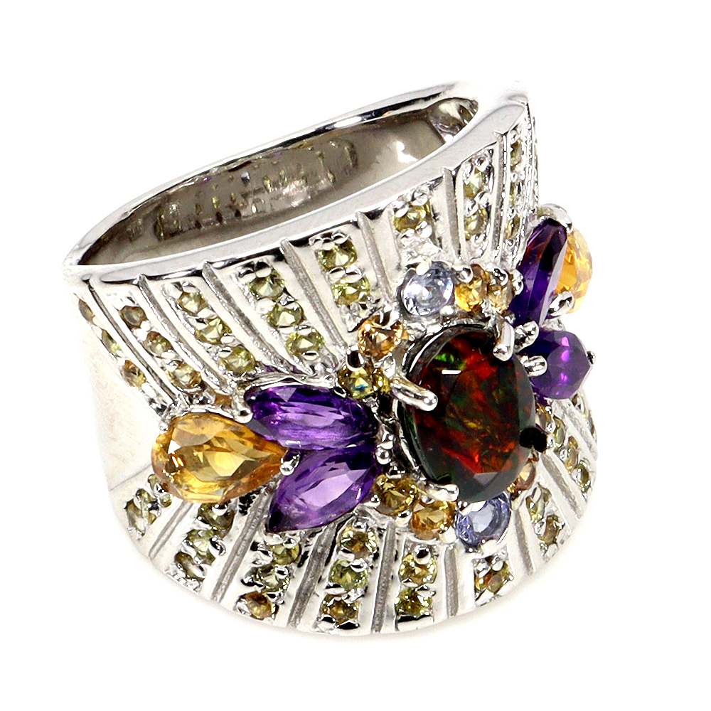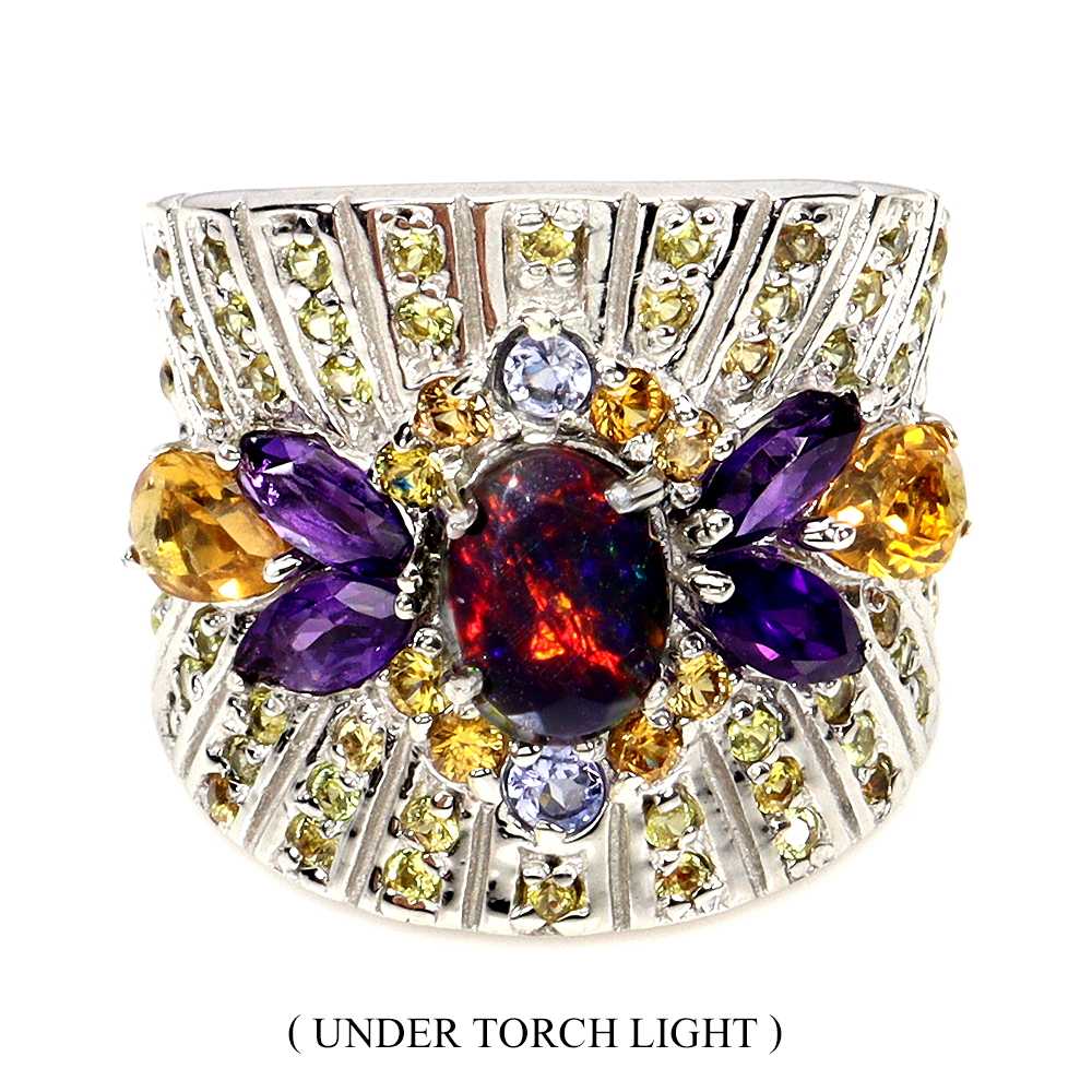 Valentine 925 Sterling Silver Ring Oval Black Opal Citrine Gemstone Jewelry Size 8