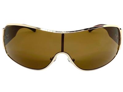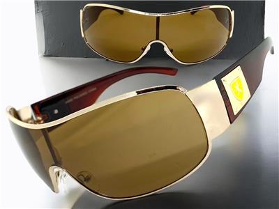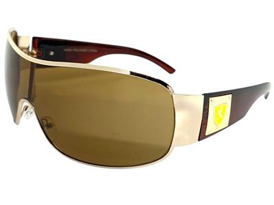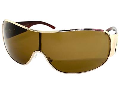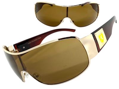 frame with brown tinted lenses. The wrap style provides a sporty and