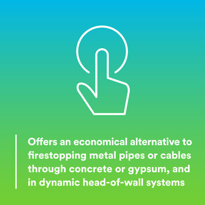 3M™ Fire Barrier Sealant FD 150+ acts as an acoustic barrier by minimizing noise transfer (STC-Rating of 56 when tested in a STC 56-rated wall assembly). We designed this fire barrier sealant to be water-based for easy installation, cleanup and disposal. In addition, the high-solids formula produces limited shrinkage. This halogen-free sealant is sag-resistant and has an excellent caulk rate (applied with conventional caulking equipment). It dries to the touch in 30 – 60 minutes and can be painted. In addition, this sealant has been engineered to be re-enterable and repairable.