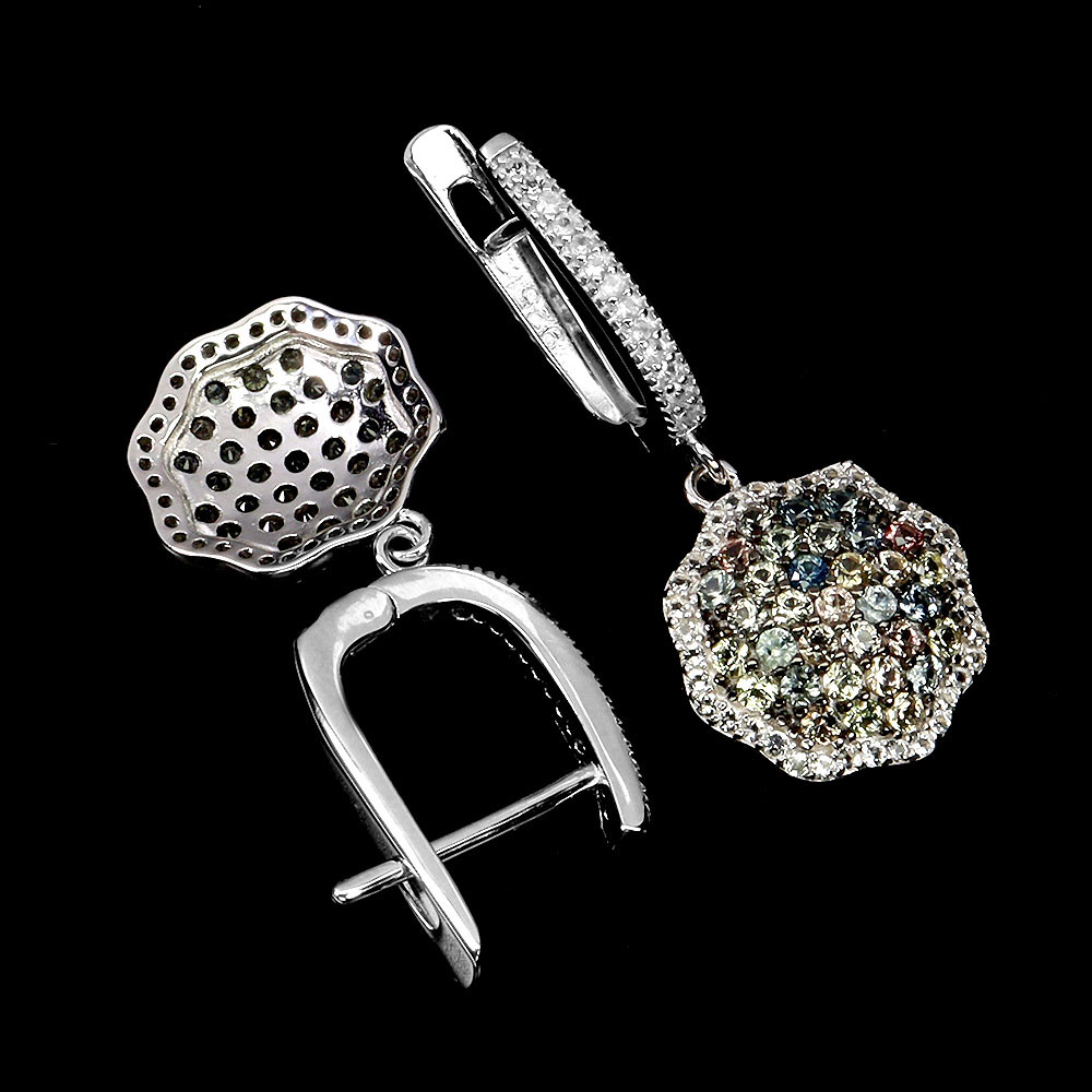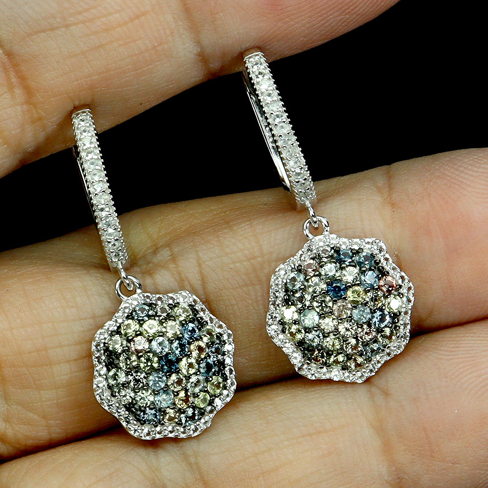 Valentine 925 Silver Earrings Round Sapphire White Topaz Gemstone Jewelry