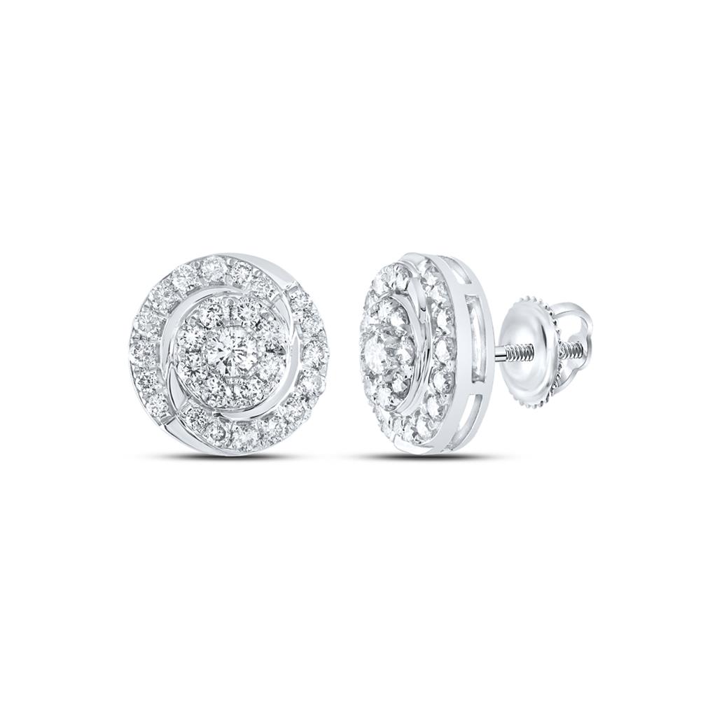 (3.78 gr. of 10k White Gold | Total Carat Weight: 1 ct. t.w. of White Diamonds | Length: 8mm | Width: 8mm | Clarity: I1 - I2 | Color: I - J | Unisex Adult Genuine White Round Cut Diamond Swirling Round Frame Statement Stud Earrings)
