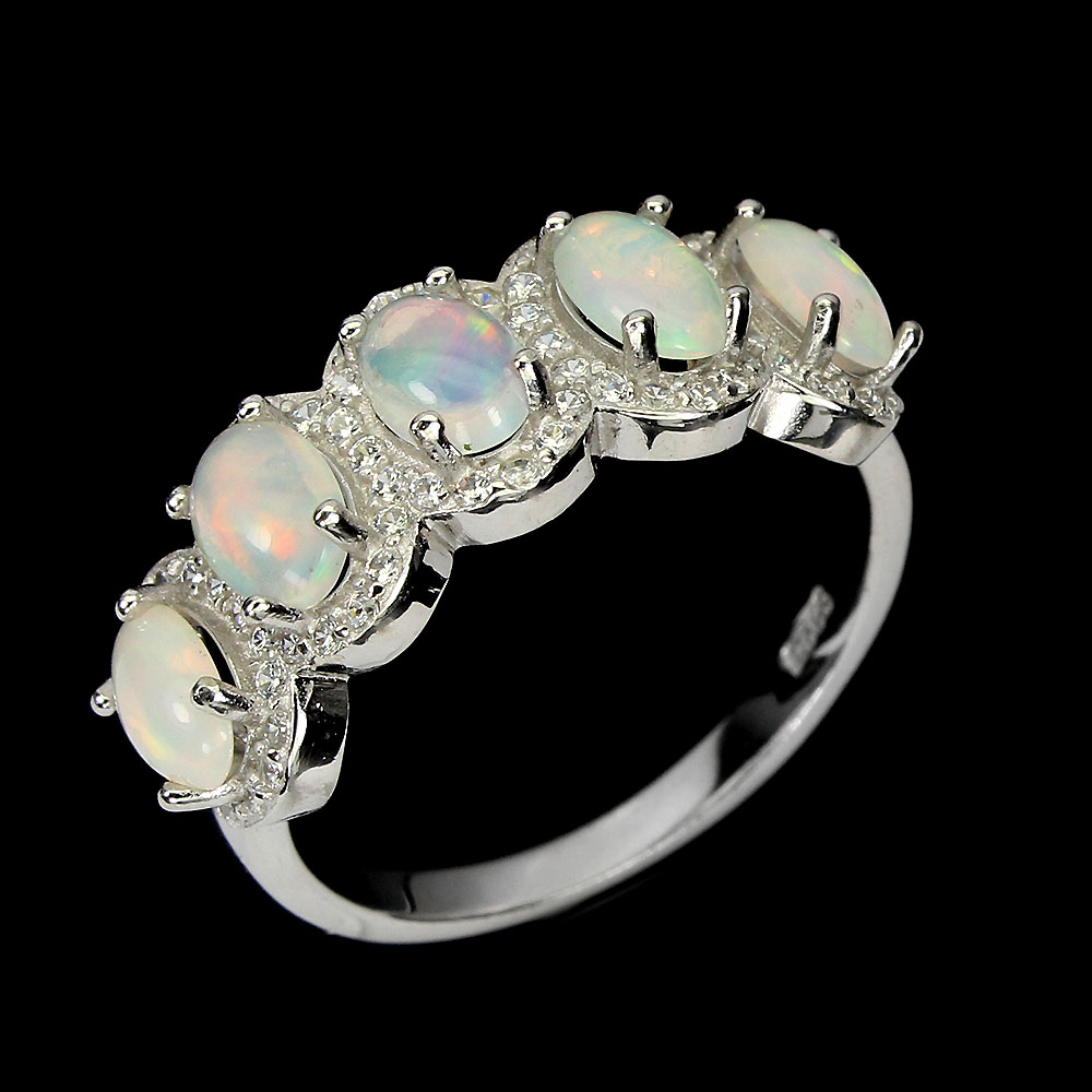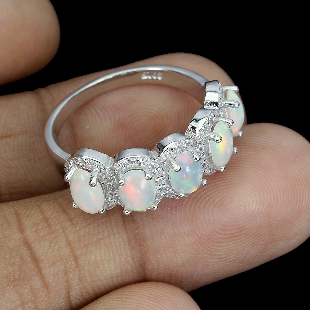 Unheated Oval Fire Opal Rainbow 6x4mm Simulated Cz 925 Sterling Silver Ring 8.5