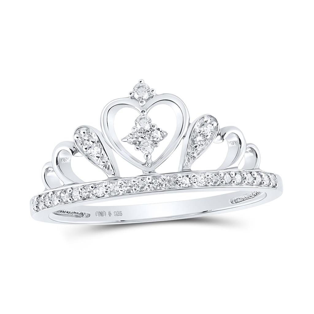 (1.66 gr. of 925 Sterling Silver | Total Carat Weight: 0.17 ct. t.w. of White Diamonds | Width: 9.5mm | Clarity: I1 - I2 | Color: H - I | Women's Round Cut Diamond Right Hand Heart | Crown | Tiara Ring Stackable Cocktail Band)