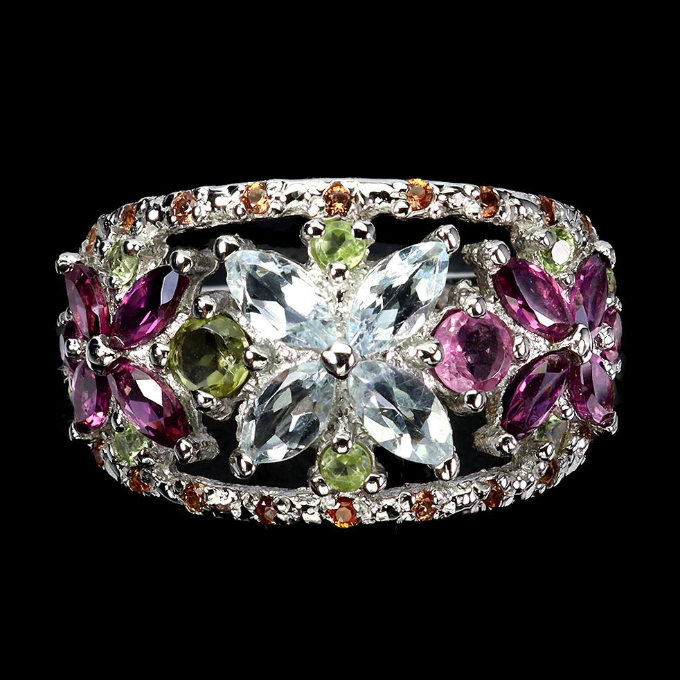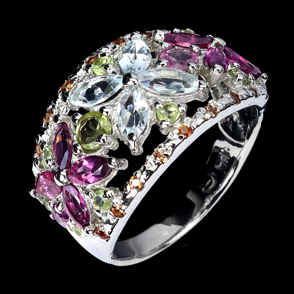 Valentine 925 Silver Ring Marquise Aquamarine Peridot Sapphire Gemstone Jewelry