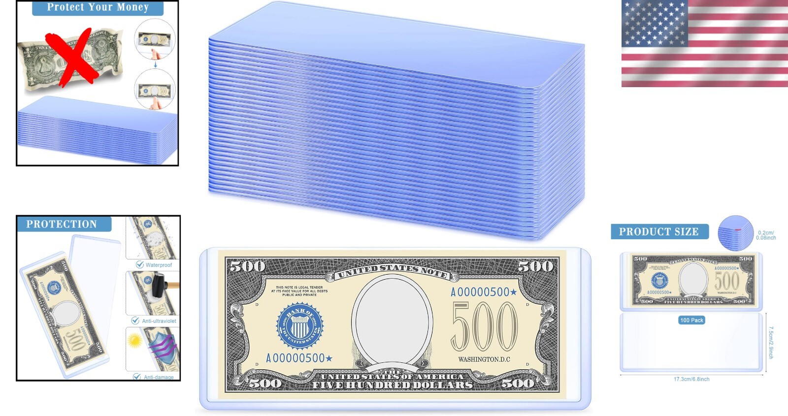 Clear PVC Currency Bill Holders - 100 Durable Display Sleeves for Collectors