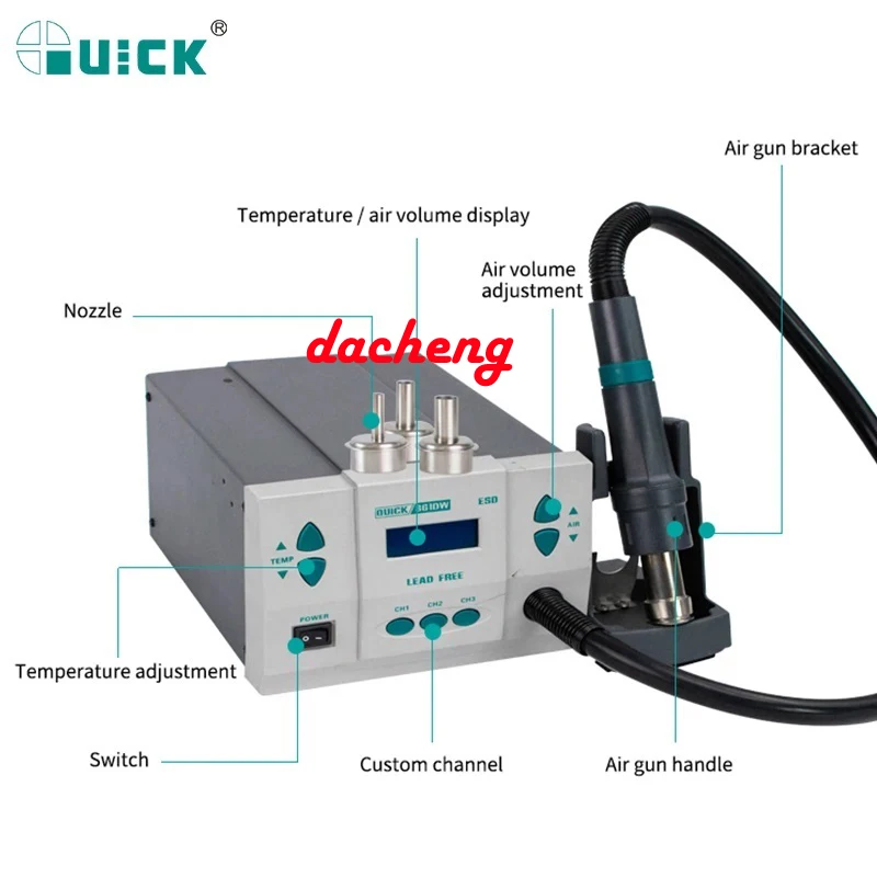 1000W quick 861dw professional hot air gun,quick 861 intelligent rework station,precise temperature control,desoldering station