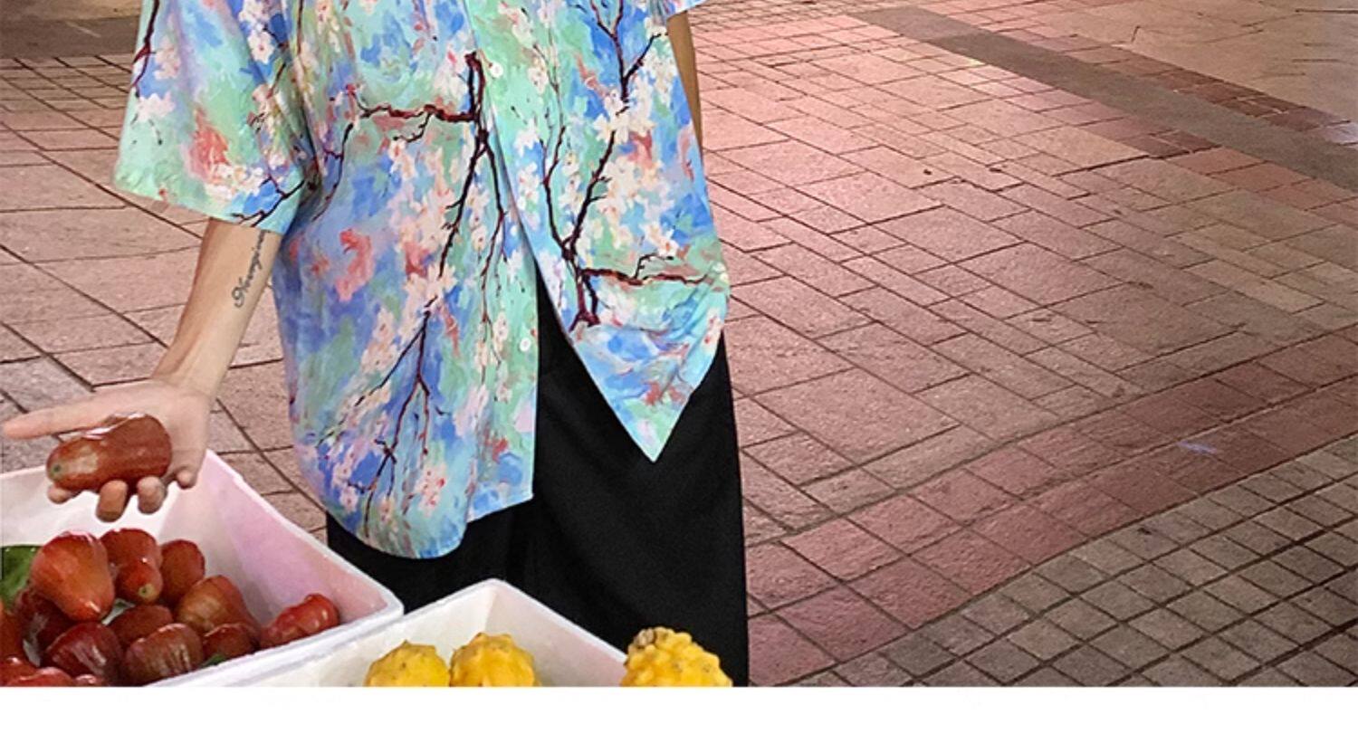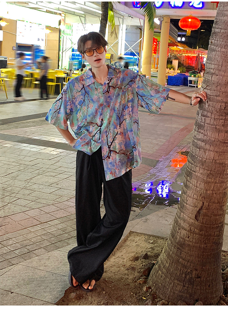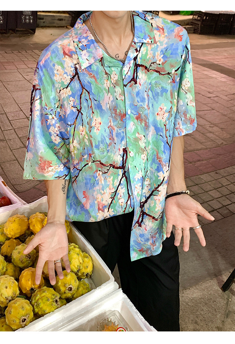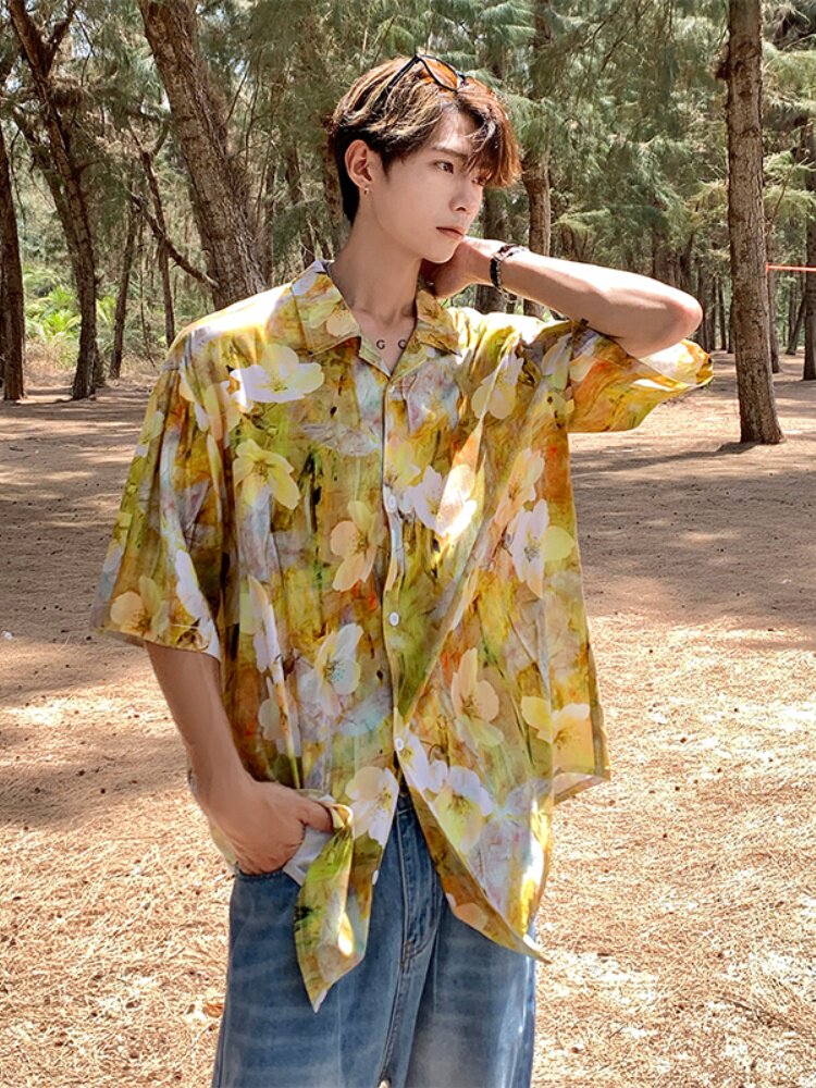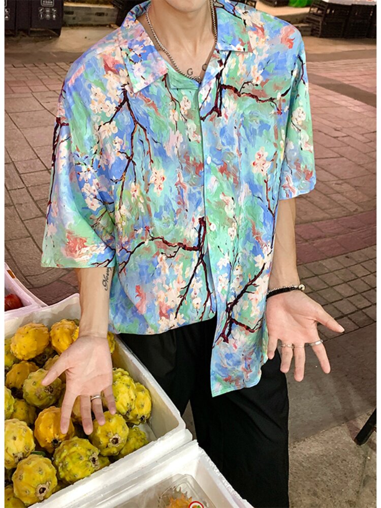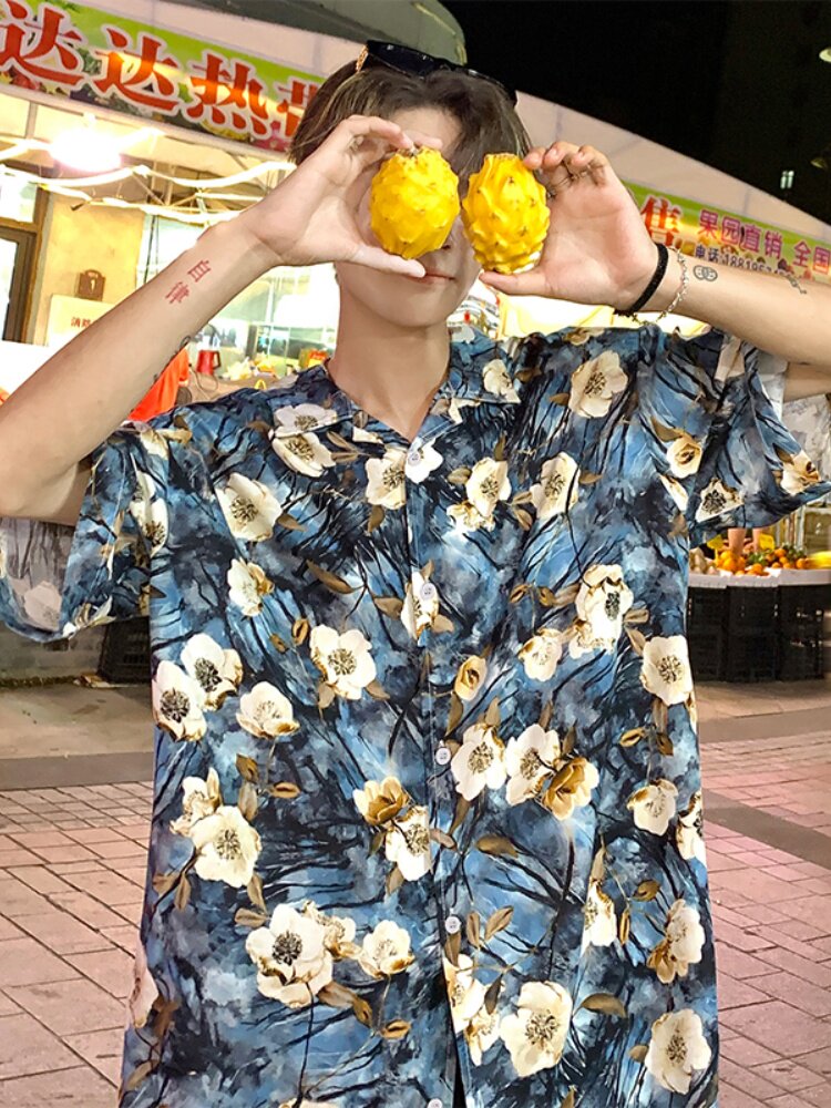 Hawaiian Beach Shirt Summer Thin Loose Silk Short-sleeved Floral Shirt Retro Top