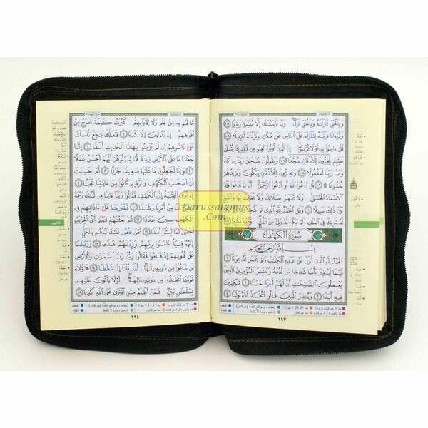 The "Tajweed Quran (Whole Quran, With Zipper, Medium Size)" is essential for those committed to studying the practice of Tajweed and reciting the Quran with appropriate pronunciation and rhythm. Tajweed is an important part of Quranic recitation, and this edition is an excellent resource for newcomers and anyone looking to improve their recitation skills.
