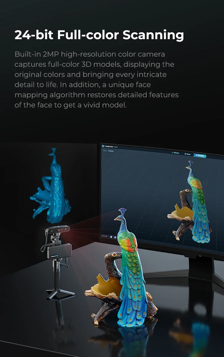 Built-in 2MP high-resolution color cameracaptures full-color 3D models, displaying theoriginal colors and