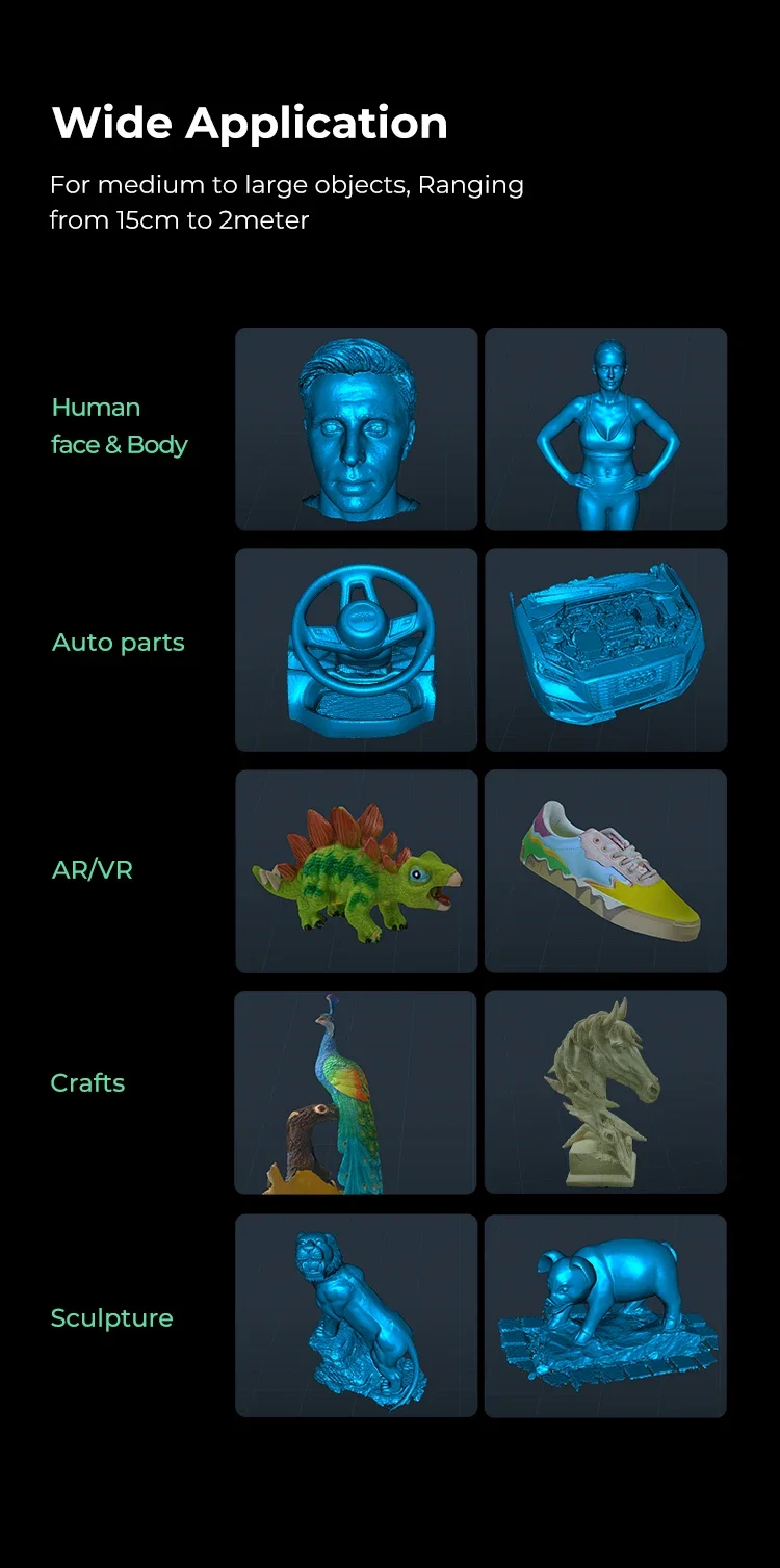 The built-in specific 3D imagingASIC chip provides computingcapability, enables fast scanningfor medium and large objects.