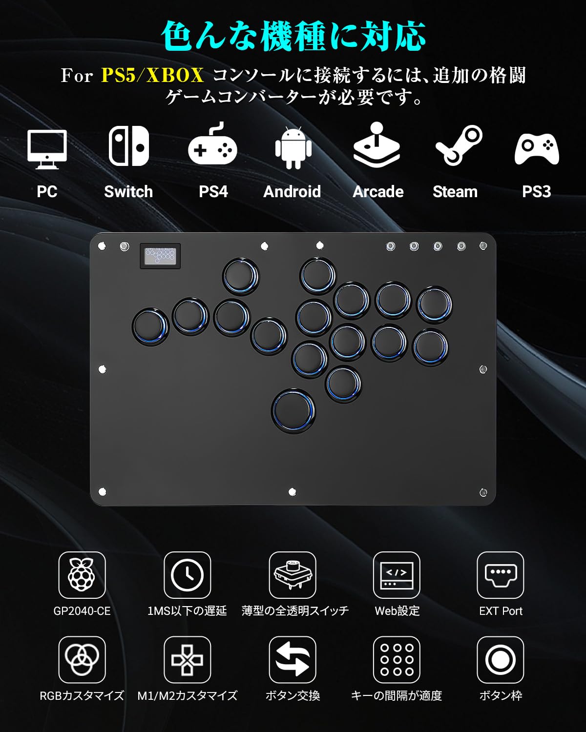Haute42 Arcade Stick Leverless Controller Leverless Arcade Stick R16 Black