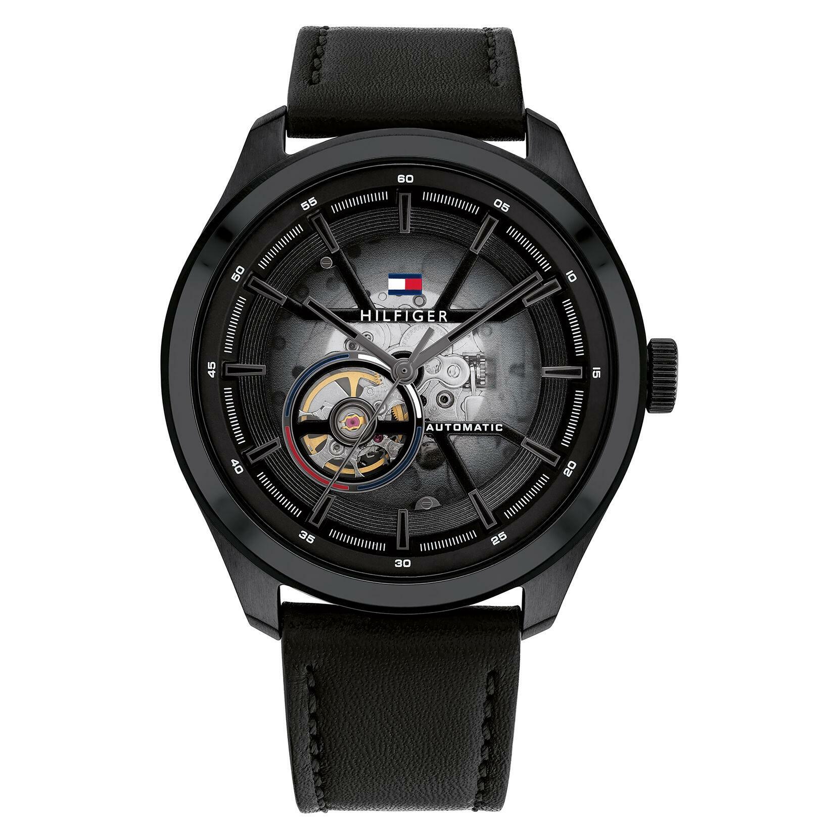 Tommy Hilfiger Oliver 1791887 BLACK DIAL LEATHER STRAP AUTOMATIC 45mm Mens Watch