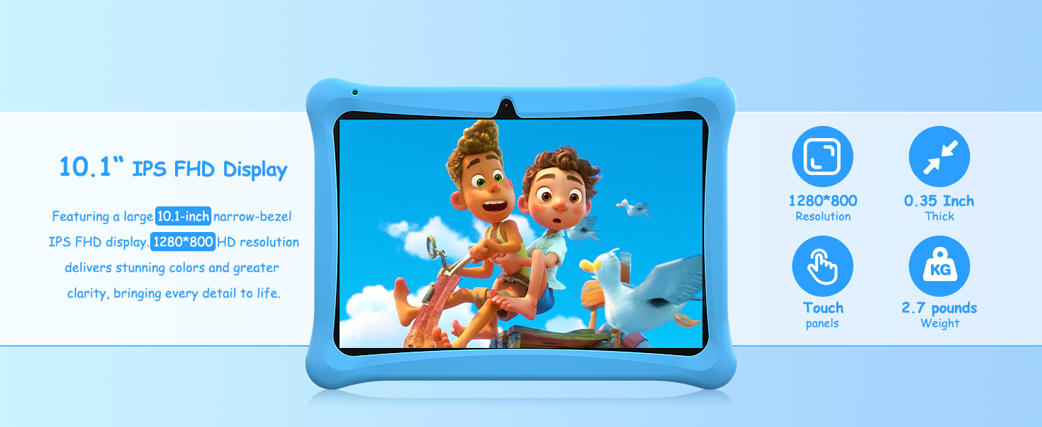 - 【HD 10" Large screen】 Extra large 10" toddler tablet with 1280*800 IPS Full HD touch screen, providing richer and more vivid colors for your kids. High contrast ratio, wide viewing angle, bright display and realistic colors. Brings excellent visual effect for your kids.