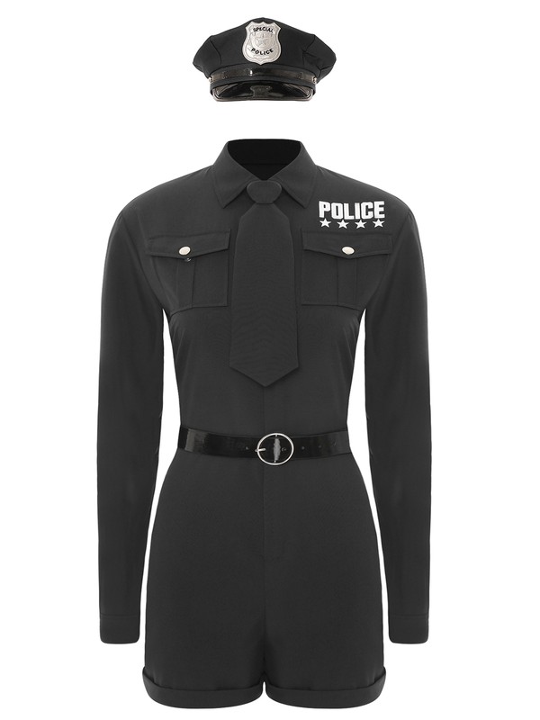 Matching a tie, a faux leather belt and a police hat, this cop uniform costume makes you chic and attractive at parties.