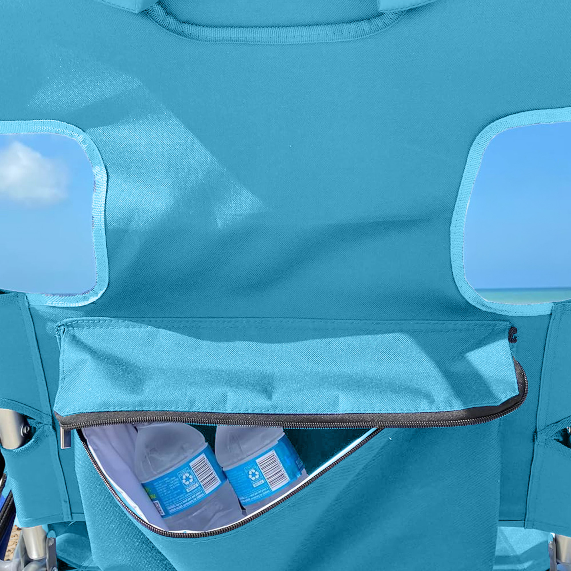 This versatile chair seamlessly combines the functionalities of a reclining lounger, a comfortable tanning chair, and a handy cooler bag, making it the perfect companion for beach outings, camping trips, or any outdoor adventure. Crafted with a lightweight yet sturdy aluminum frame, this chair sits 14 inches off the ground, ensuring easy access and enhanced comfort. The patented open/close face cavity, complete with armholes and a head pillow, allows you to lie comfortably face down or up, perfect for sunbathing, reading, or simply relaxing. With 5 adjustable chair positions and 3 adjustable footrest positions, you can customize your lounging experience to suit your needs. The large insulated cooler storage compartment keeps your drinks and snacks chilled and within reach, enhancing your leisure time without the need for extra bags or coolers.