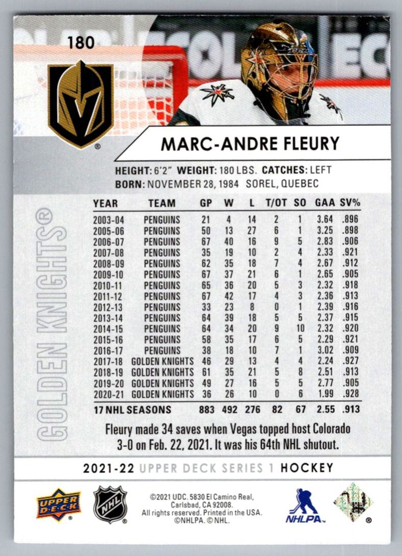 2021-22 Upper Deck Marc-Andre Fleury Vegas Golden Knights #180