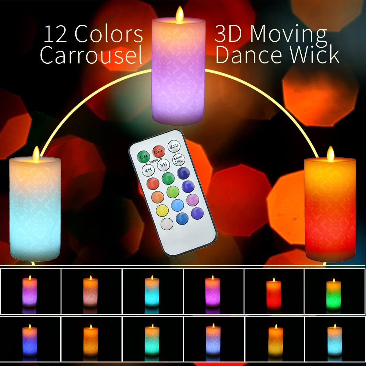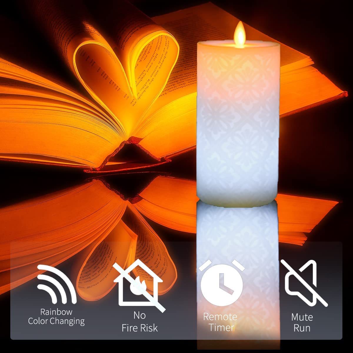 RGB Flickering Flameless LED Pillar Candles Lights with Remote Battery Operate