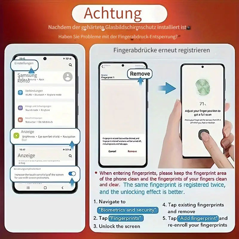 Info ! Das Schutzglas ist, je nach Samsung Galaxy Modell, ringsrum um bis zu wenige mm kleiner geschnitten als die Glasfront des Handys. Somit können auch Handyhüllen verwendet werden die bis über den gekrümmten Rand des Displays reichen, ohne das sich das Schutzglas ablöst oder an den Rändern beschädigt wird.