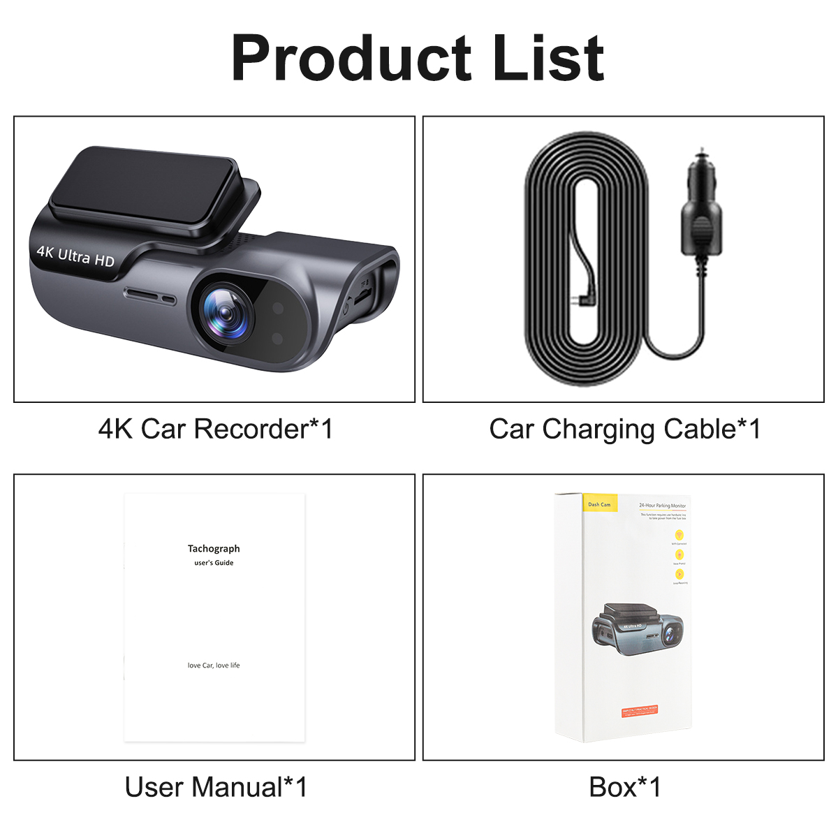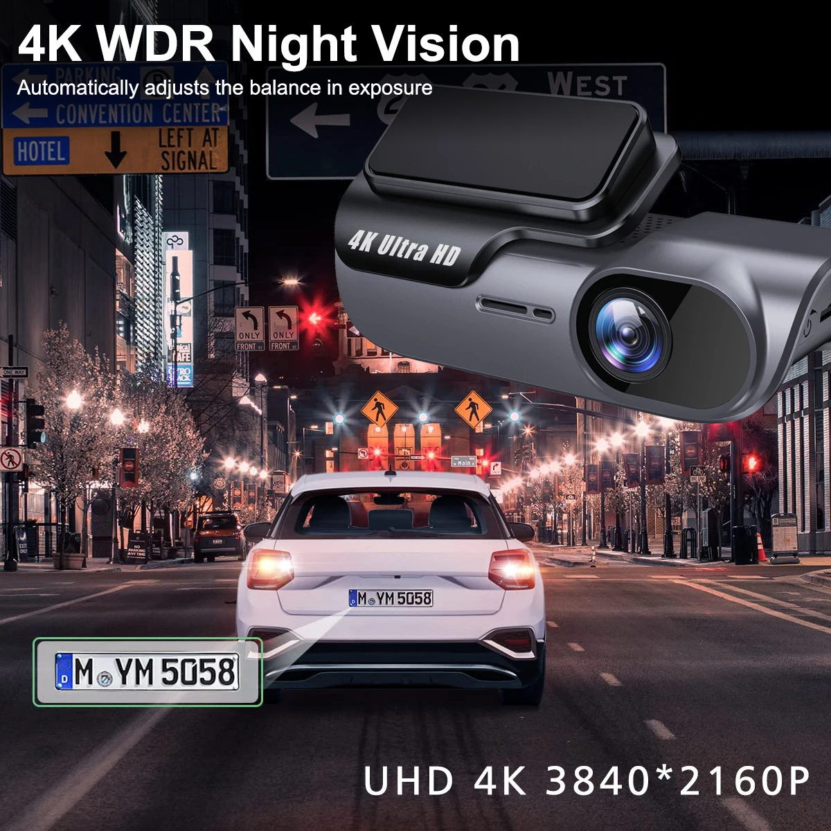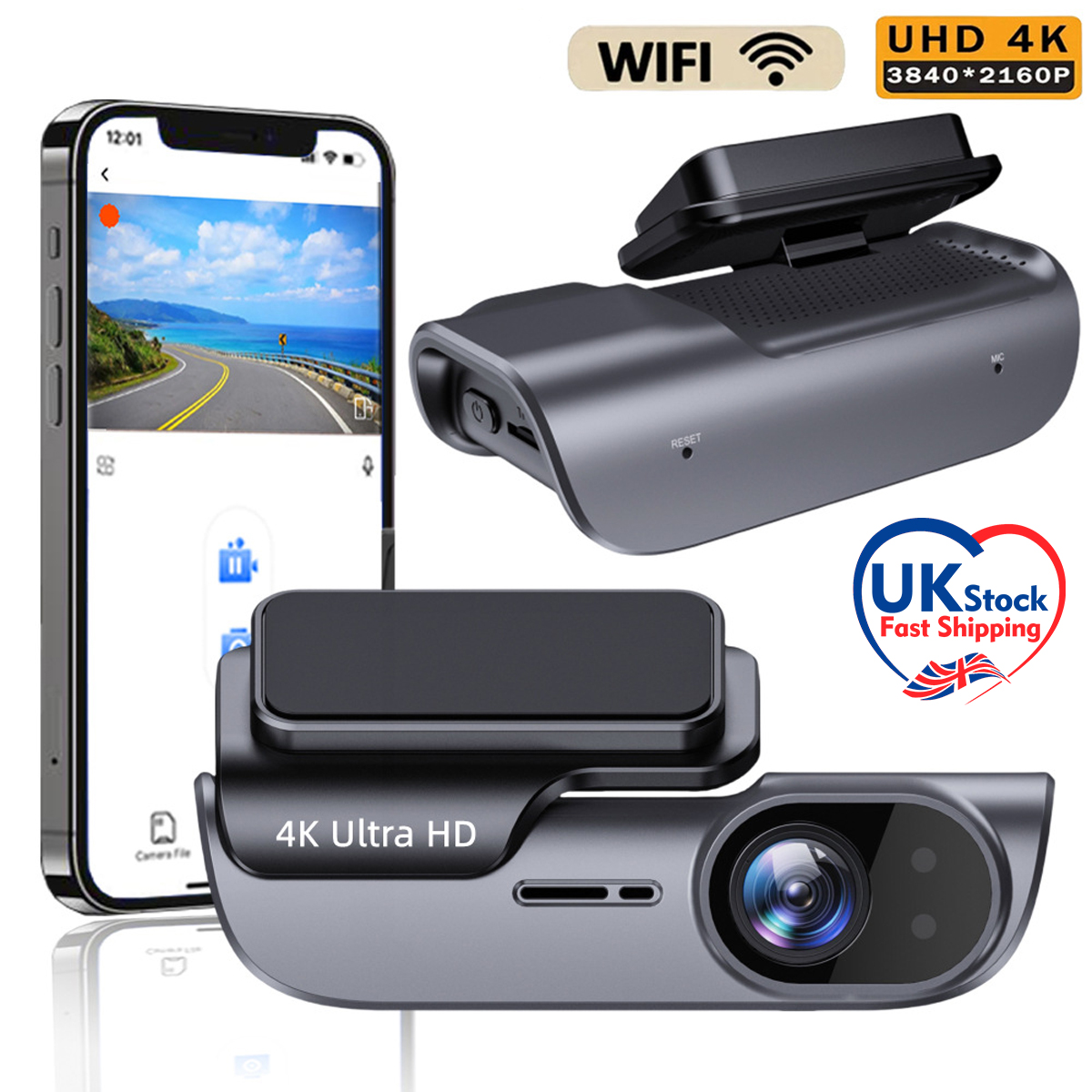 4K Car Dash Camera with Wi-Fi Driving Vehicle Cam Night Vision Car Camcorder