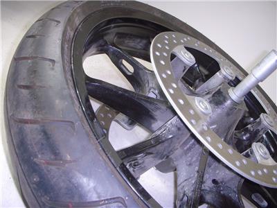 UP FOR SALE: QTY 1 FRONT RIM WITH A DUNLOP D254 130/60R19 TIRE MOUNTED ON,,, NOT GREAT CONDITION BUT OK