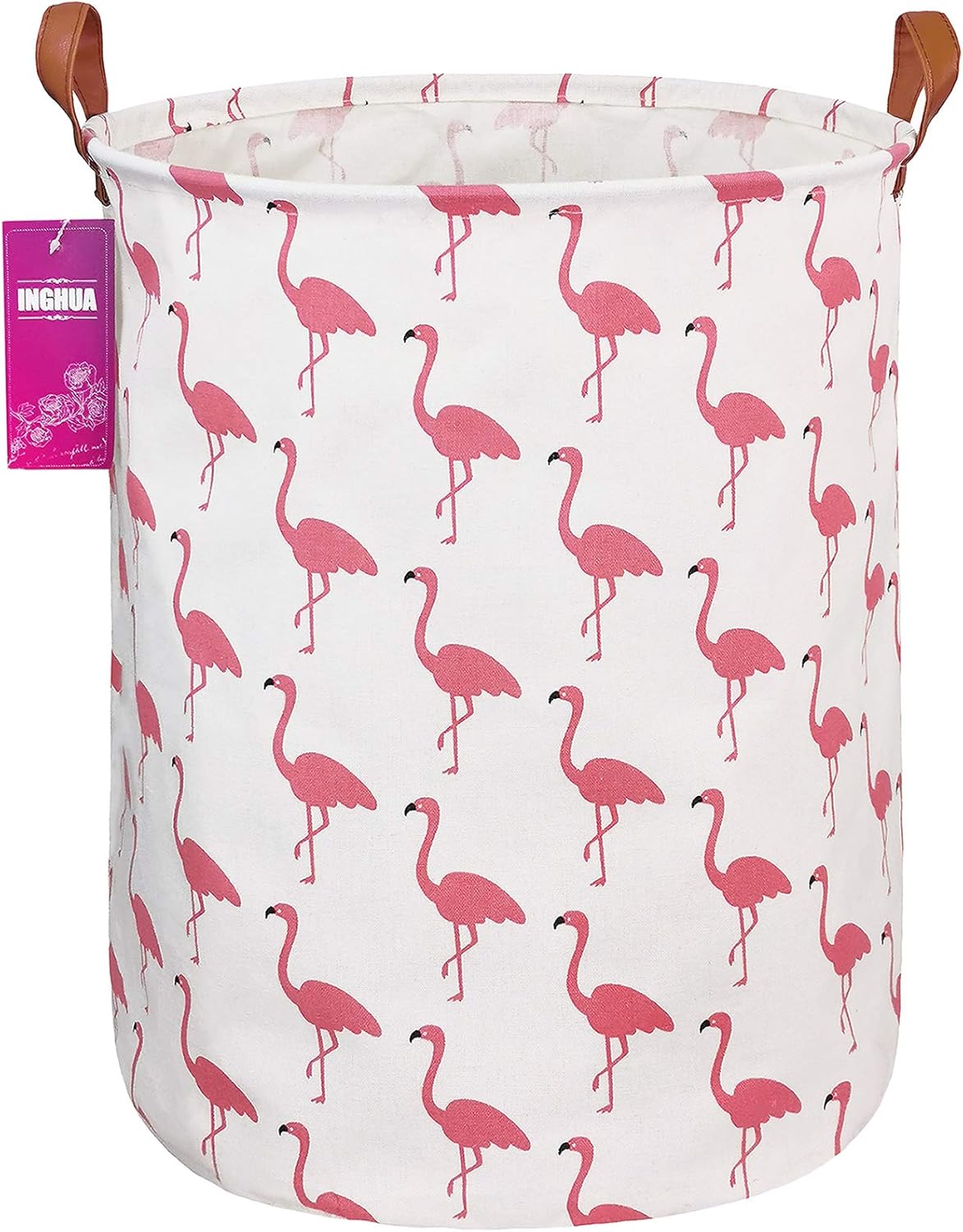Size:15.7"D×19.7"H inches (40×50cm),convenient size with capacity of many items. Material:Made of linen fabric+Polyester canvas + Waterproof PE coating is lightweight and portable for using, storing, and moving conveniently. Features: -We choose high quality linen and polyester canvas -It's safe, non- toxic, wear-resistant. -With handles to conveniently lift it. -The laundry hamper adopted collapsible design,It can stand up on its own well. -This storage basket suitable for adult,for girls, for boys, for teens, for childern,for pets. Multiple uses: you can use it to collect toys, dolls and story books for your kids; you can use it as a hamper to put your clothes, socks and shoes in, you can even use it as a shopping bag. Suitable for any occasion:This storage bin suitable for home, for shelves, for closets, for nursery, for children room, for batheroom, for bedroom, for living room, for laundry room, for kitchen,for balcony,for office, for school,for cars, for outside. Washing tips: - Wipe clean only, do not use abrasive cleaner.