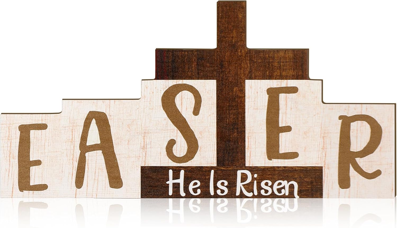 - Easter Theme: the Easter design of these wooden Easter cross decor adopts the shape of a cross, decorated with words [he is risen], and Easter patterns; They symbolize hope and life, creating an Easter atmosphere within your residence