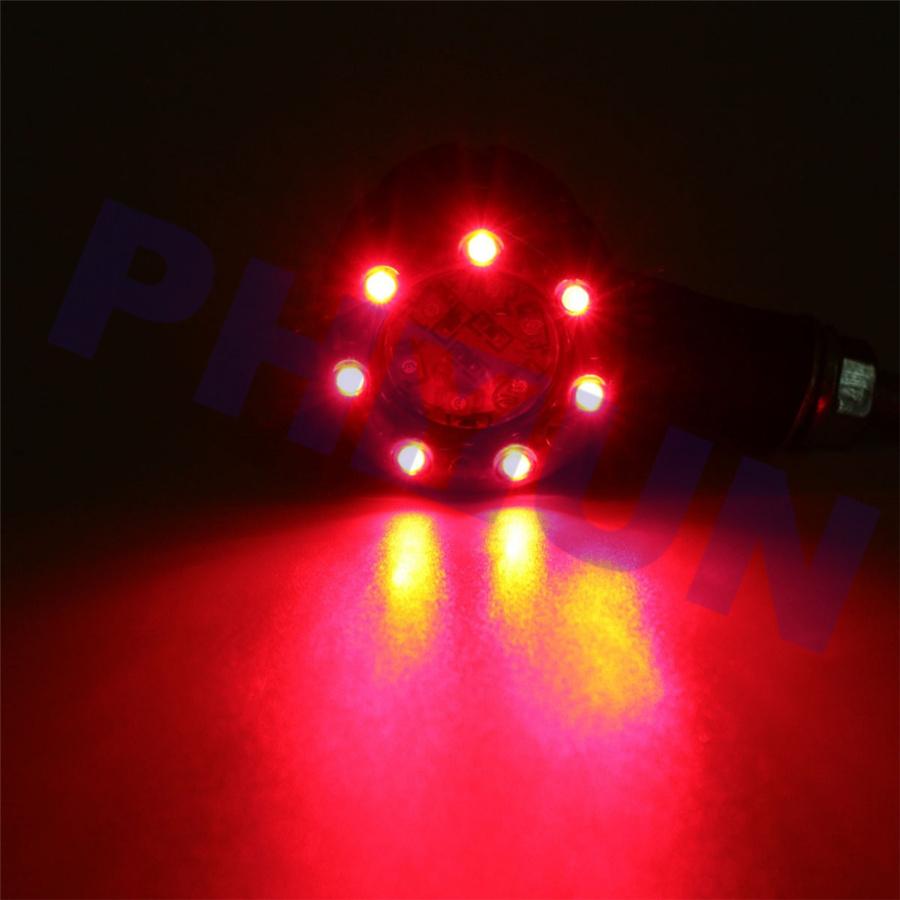 Noteļ¼running light and brake light color are red,so you can only use these 2 fuction on rear turn signals,front turn signal only has turn signal function (DO NOT connect blue and red wire )