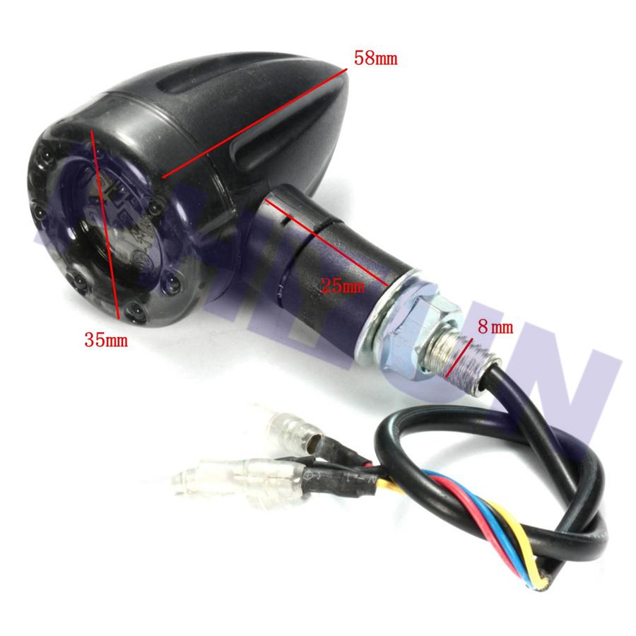 Wire connection:Black-negative,Yellow-turn signal,Blue-running light,Red-brake light