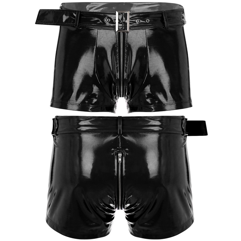 Patent leather with wet look brings endless temptation and sexiness. Slim fit underwear enhances masculine contour.