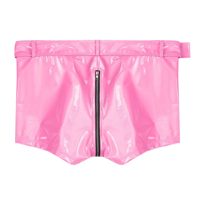 Boxer shorts design with bulge pouch, slim fit and zipper crotch; matches with waist belt, adjustable buckle and eyelets look so cool.