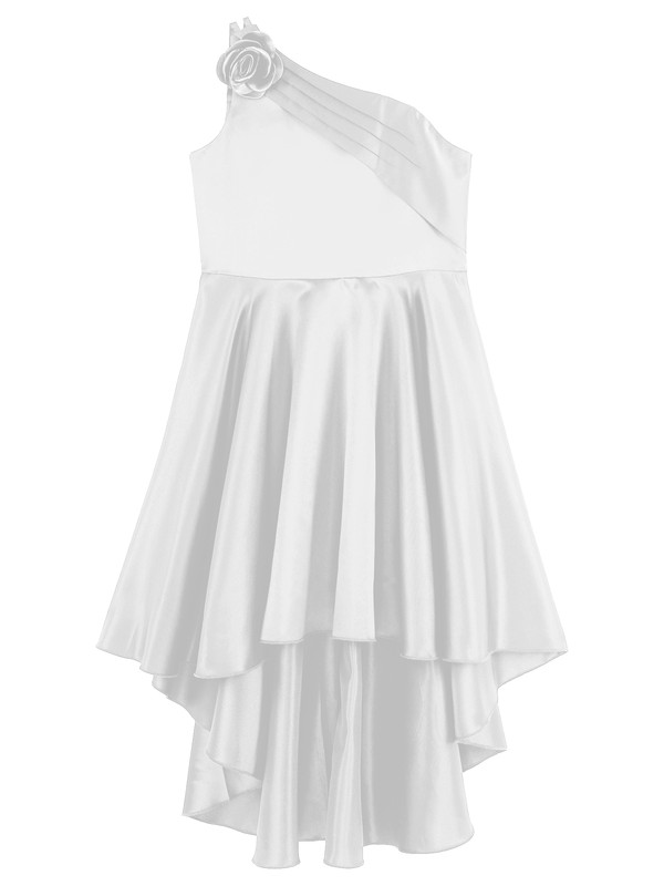 Adjustable spaghetti straps, detachable fake flowers and ruffled design, irregular hemline, which is unique and chic.