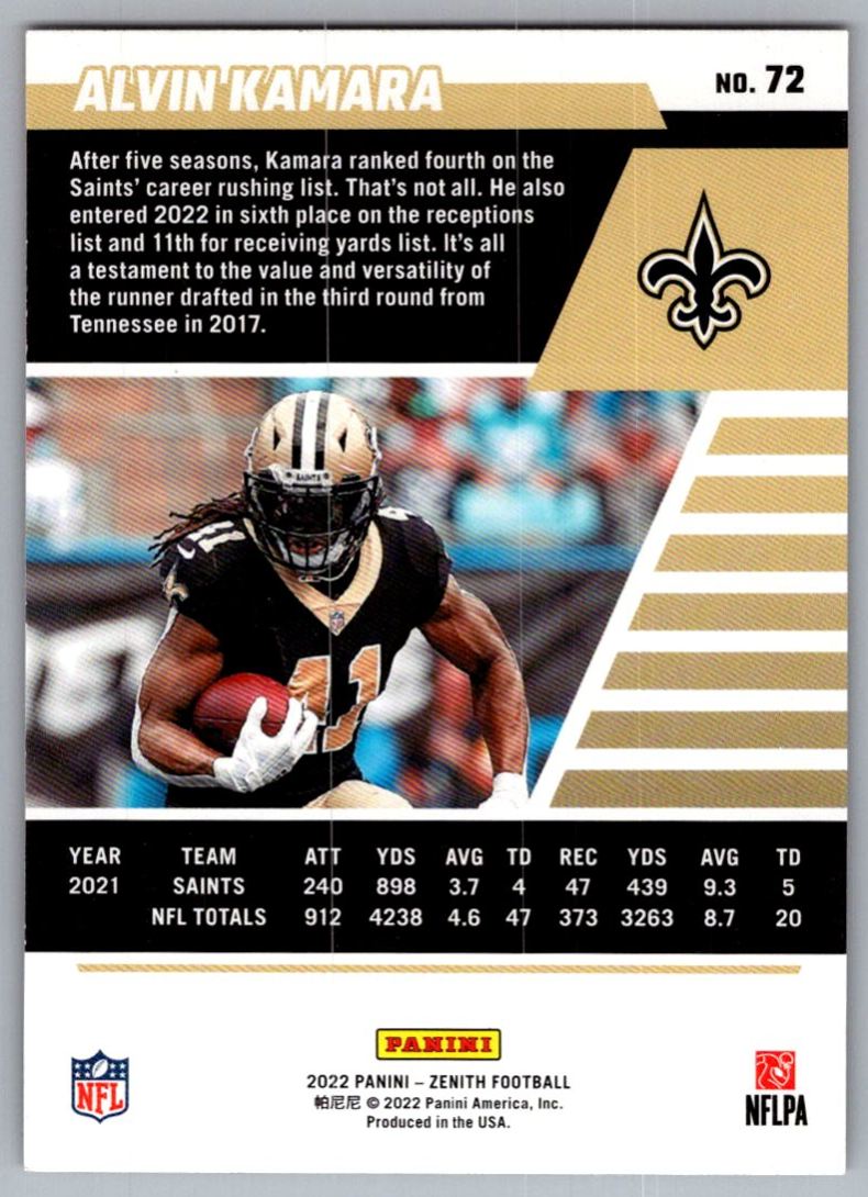 2022 Panini National Treasures Alvin Kamara New Orleans Saints #72