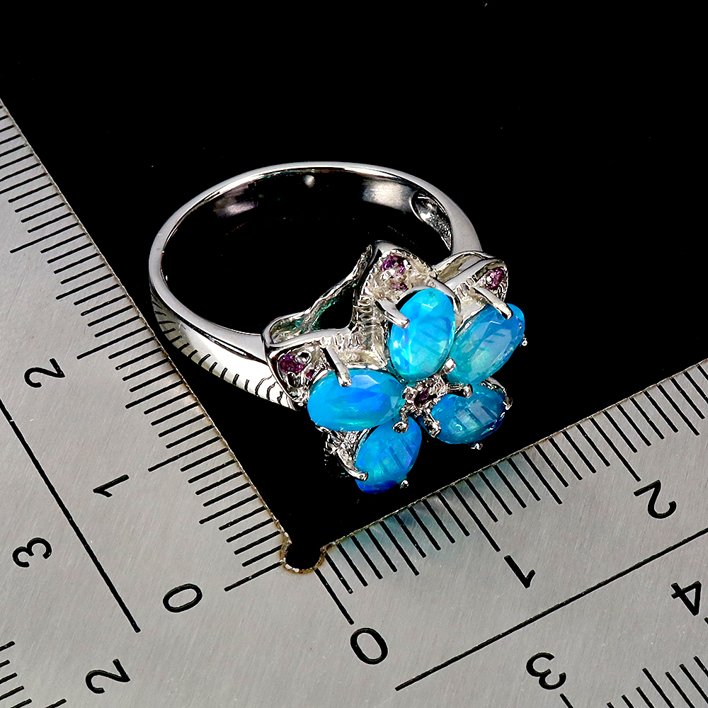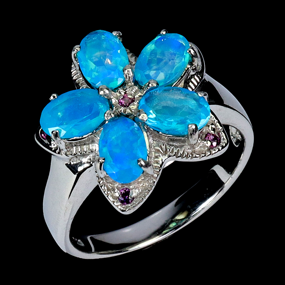 925 Sterling Silver Ring Oval Blue Opal 6x4mm Rhodolite Gemstone Jewelry Size 8
