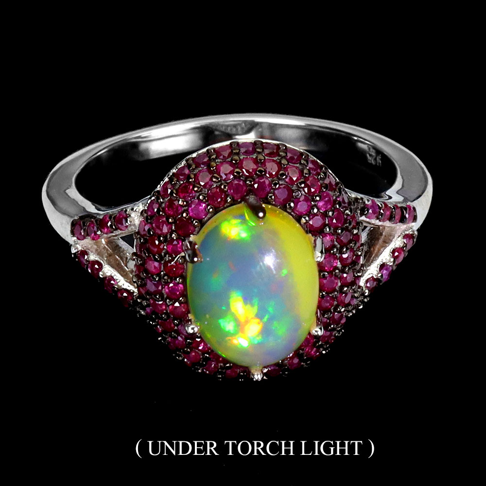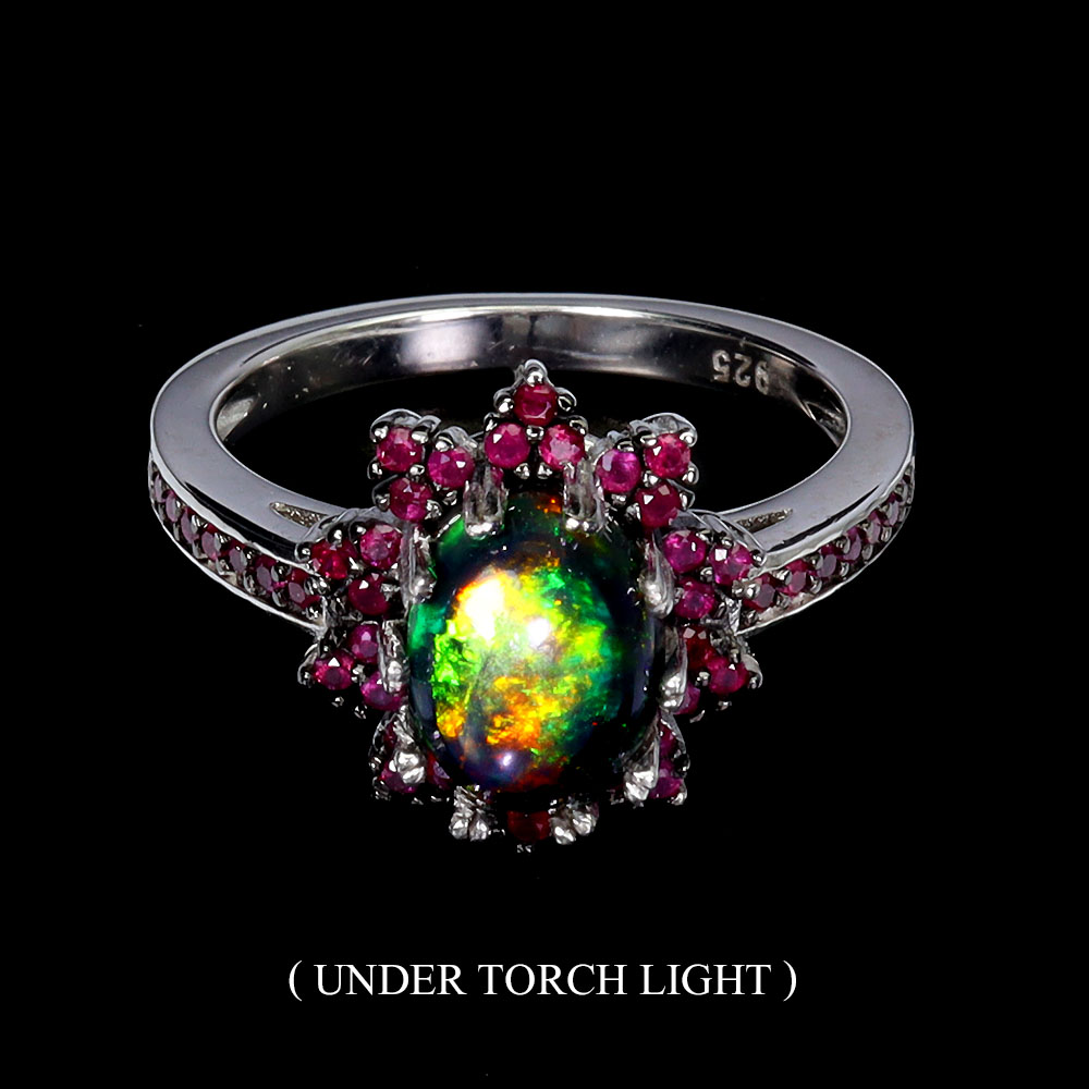 925 Sterling Silver Ring Oval Fire Opal 9x7mm Ruby Myanmar Gemstone Jewelry 8