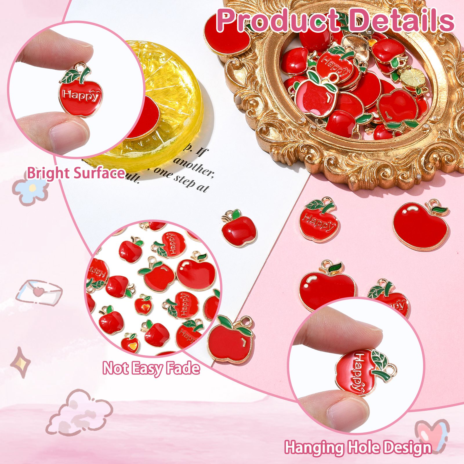 Apple: about 17.5x15x1.5mm, hole: 2mm, 6pcs;